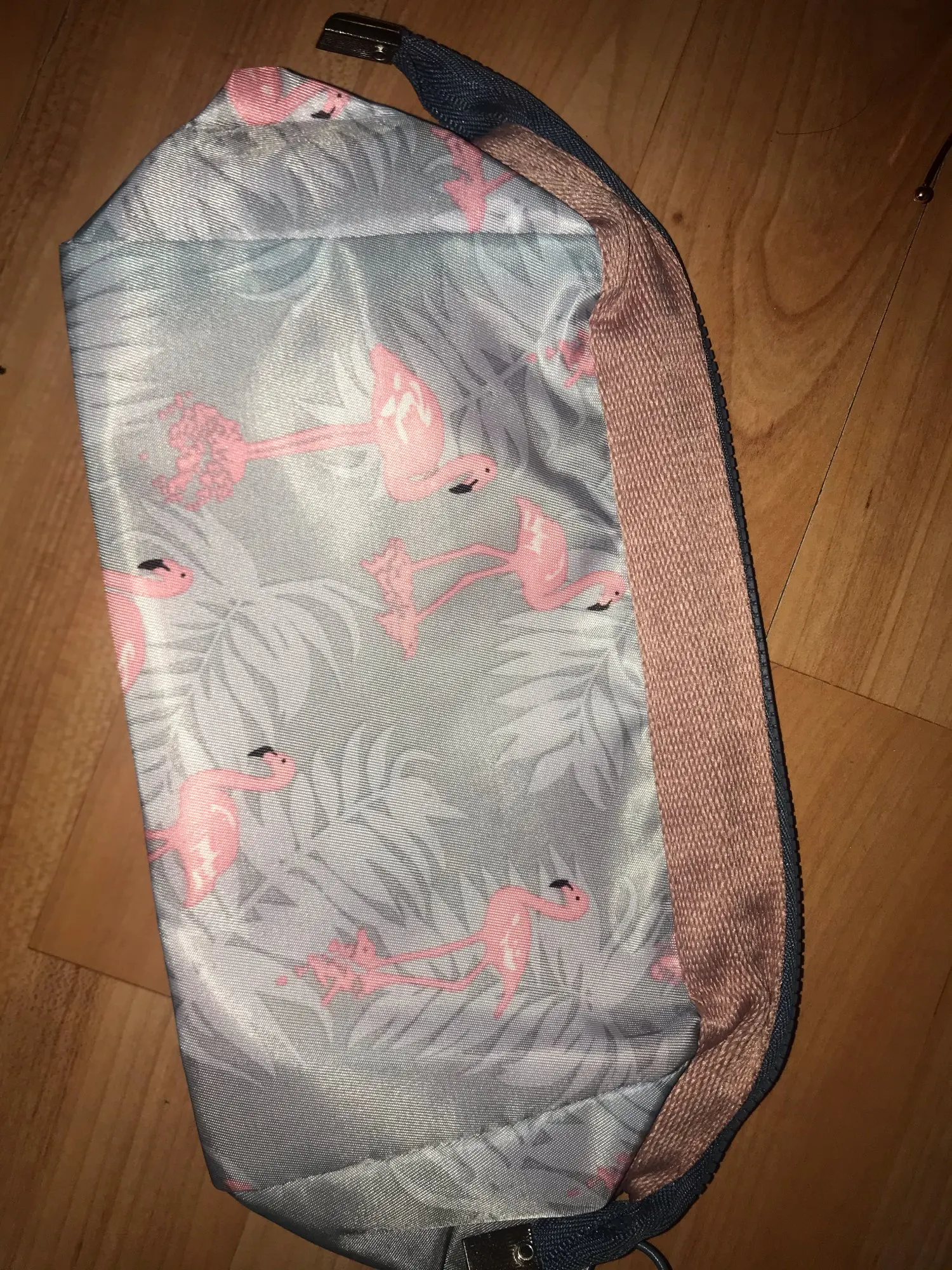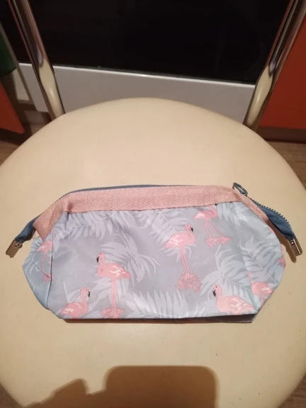 Reçu avec la trousse une house de protection motif flamant rose très jolie !!! il n'y plus qu'à ranger mon maquillage...