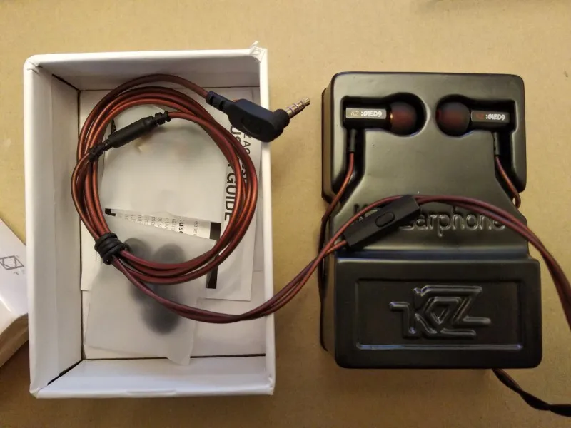 Первое впечатление - качественная упаковка самих наушников. В коробке сменные закручивающие штуки и комплект амбушюр разного размера. Раньше были kz ED1, эти выше на голову или две. Громкость хорошая: больше половины не прибавляю звук. Ощущение, что высоких частот много, с басом все ок. Отлично.