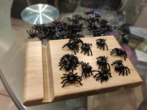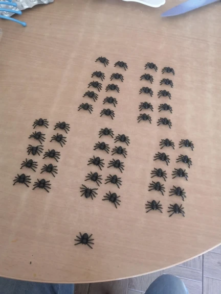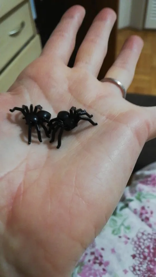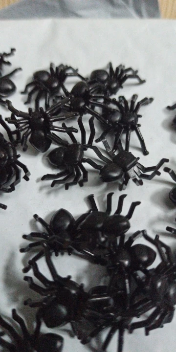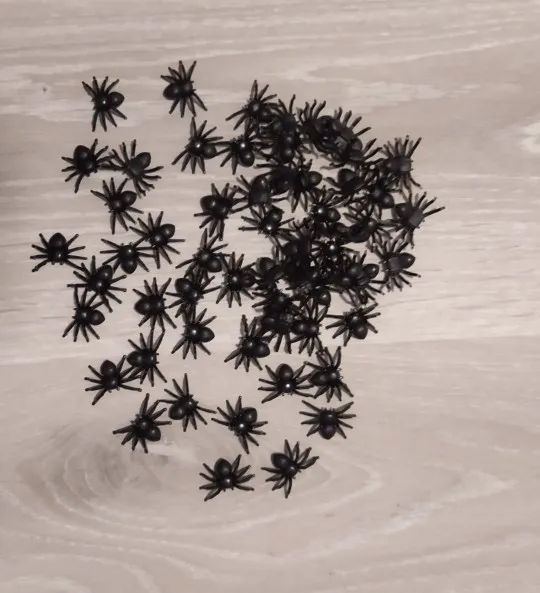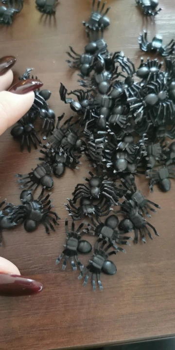 Забавные пауки. Ровно 51 штука пришла. Товар прибыл вовремя и без повреждений. Пауки пластиковые, но сделаны по большей части хорошо, издали даже похожи на настоящих. Твёрдо стоят на своих прикольных лапах. Чувствую себя так, будто собрала паучью армию :D Отличный товар, соответствует описанию продавца ^_^