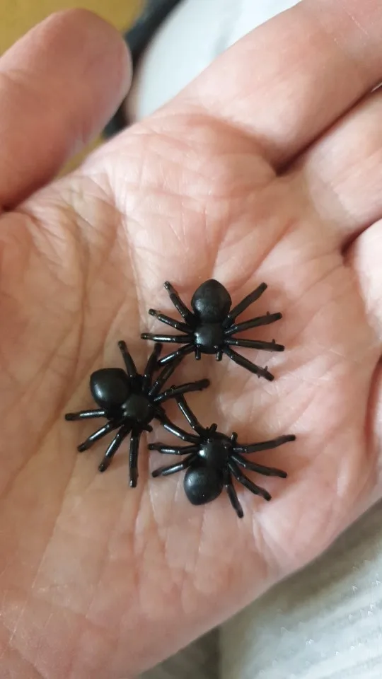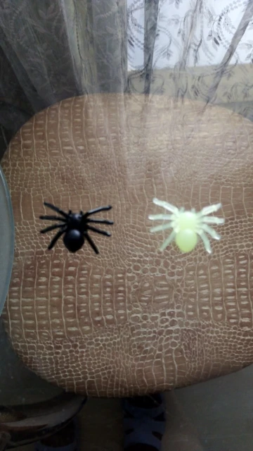 Милые паучки как игрушка, вчера напугал дочку, кинув ей на телефон)). Подойдёт для декора на зеркало, на угол стены мои т.д. Понятно, что это игрушка. Паучок пластмассовый - можно снизу приклеить кусочек двустороннего скотча и прикрепить куда надо