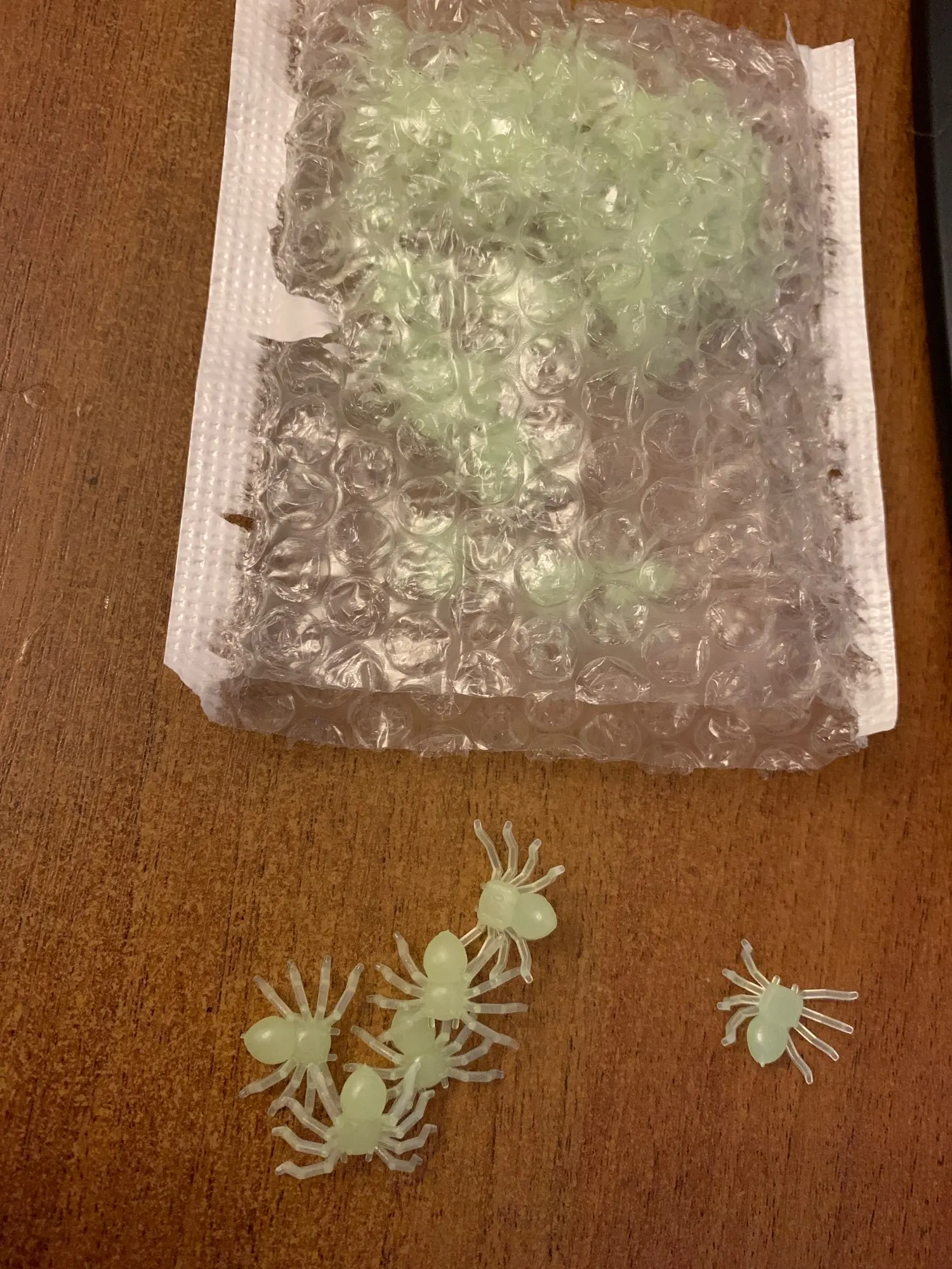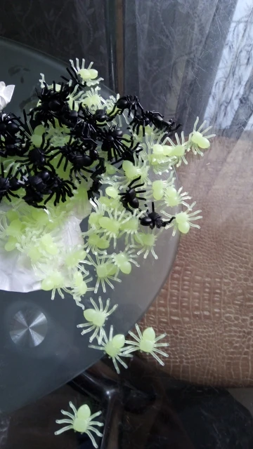 Kupiłem te pajączki dla robienia żartów .Towar przyszedł dobrze zapakowany i w miarę szybko .Co prawda w nocy świecą ale bardzo słabo