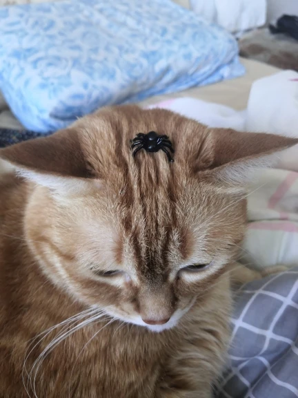 Паук не плохой, но жену напугать не удалось, хотя она до смерти боится пауков) Сейчас котенок с ним играет)