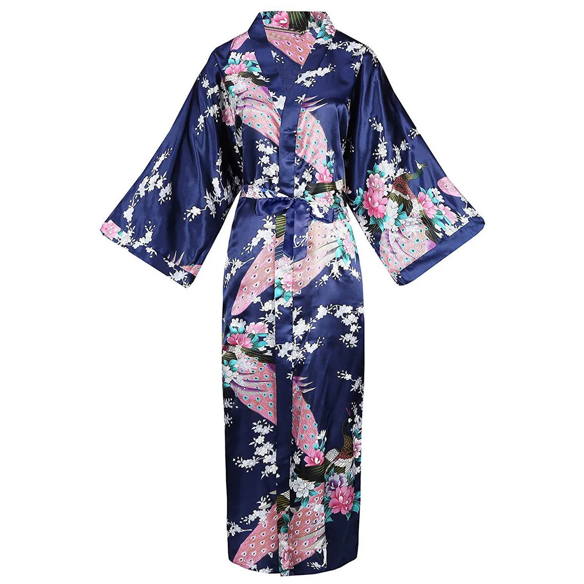 Элегантная темно-зеленая Дамская Свадебная рубашка-кимоно с изысканным цветочным принтом ночная рубашка Мягкая атласная Интимная банная сорочка 3XL