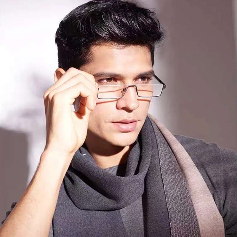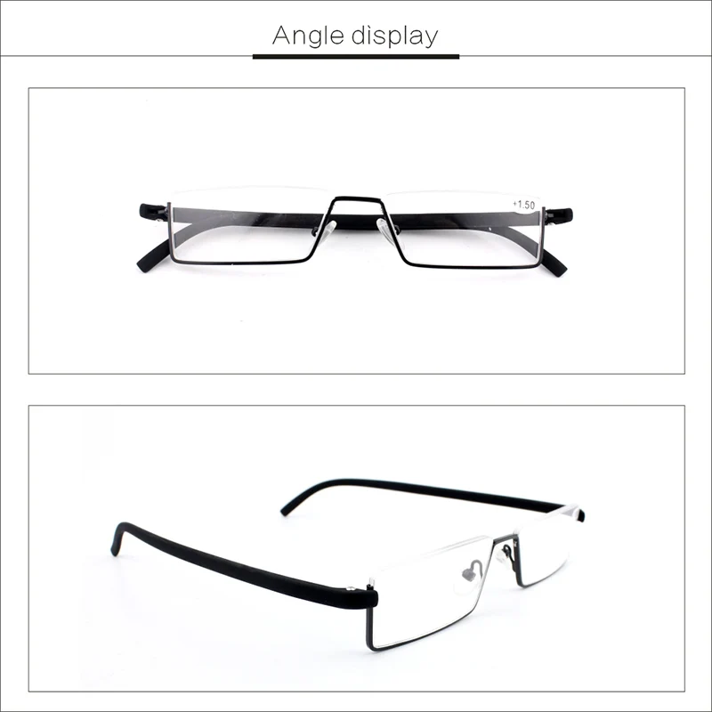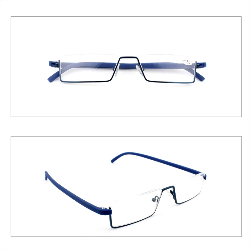 Анти Blue Ray с плоскими стеклами и половинной рамкой очки для чтения для мужчин и женщин, TR90 Портативный очки с Чехол Мини увеличительное очки пресбиопические очки