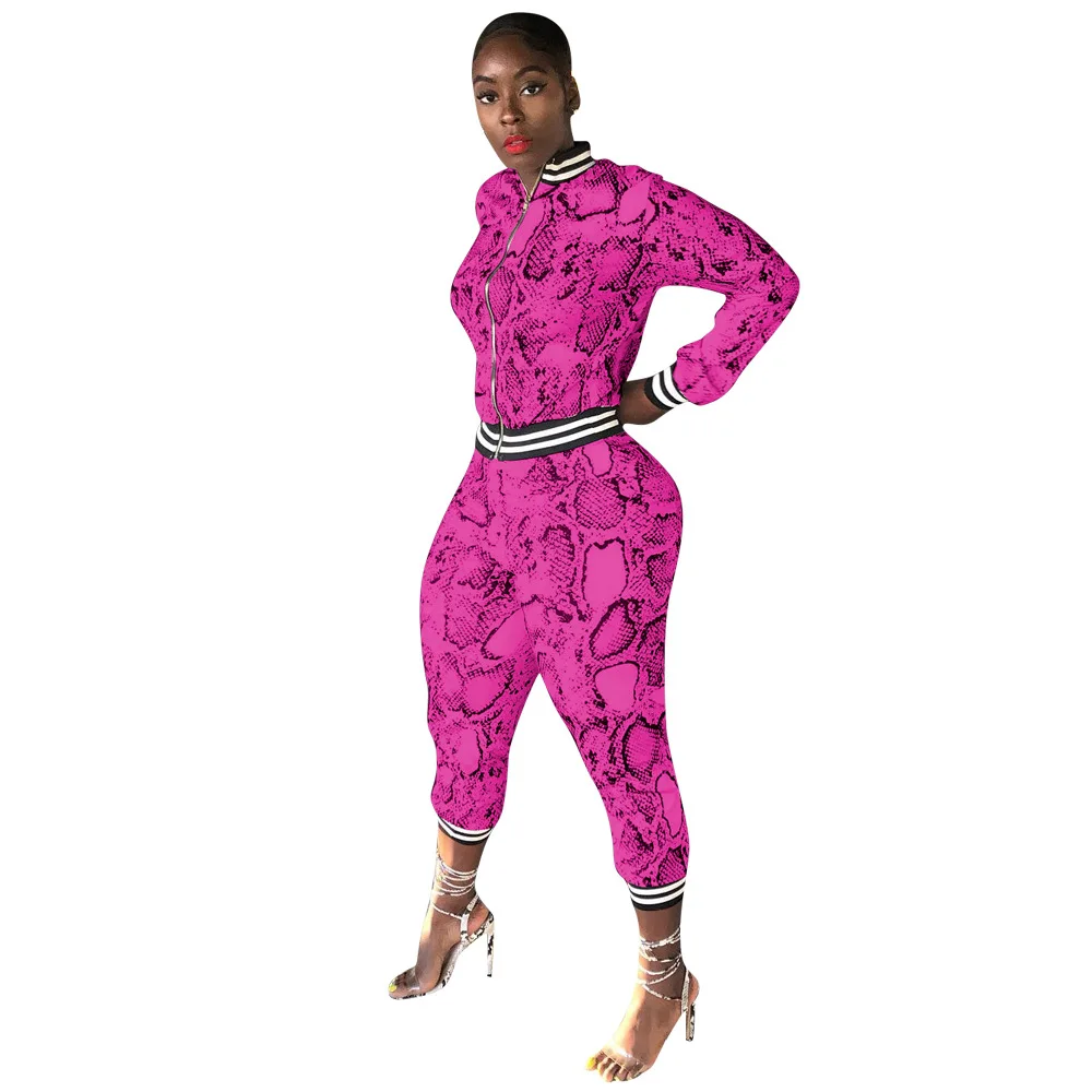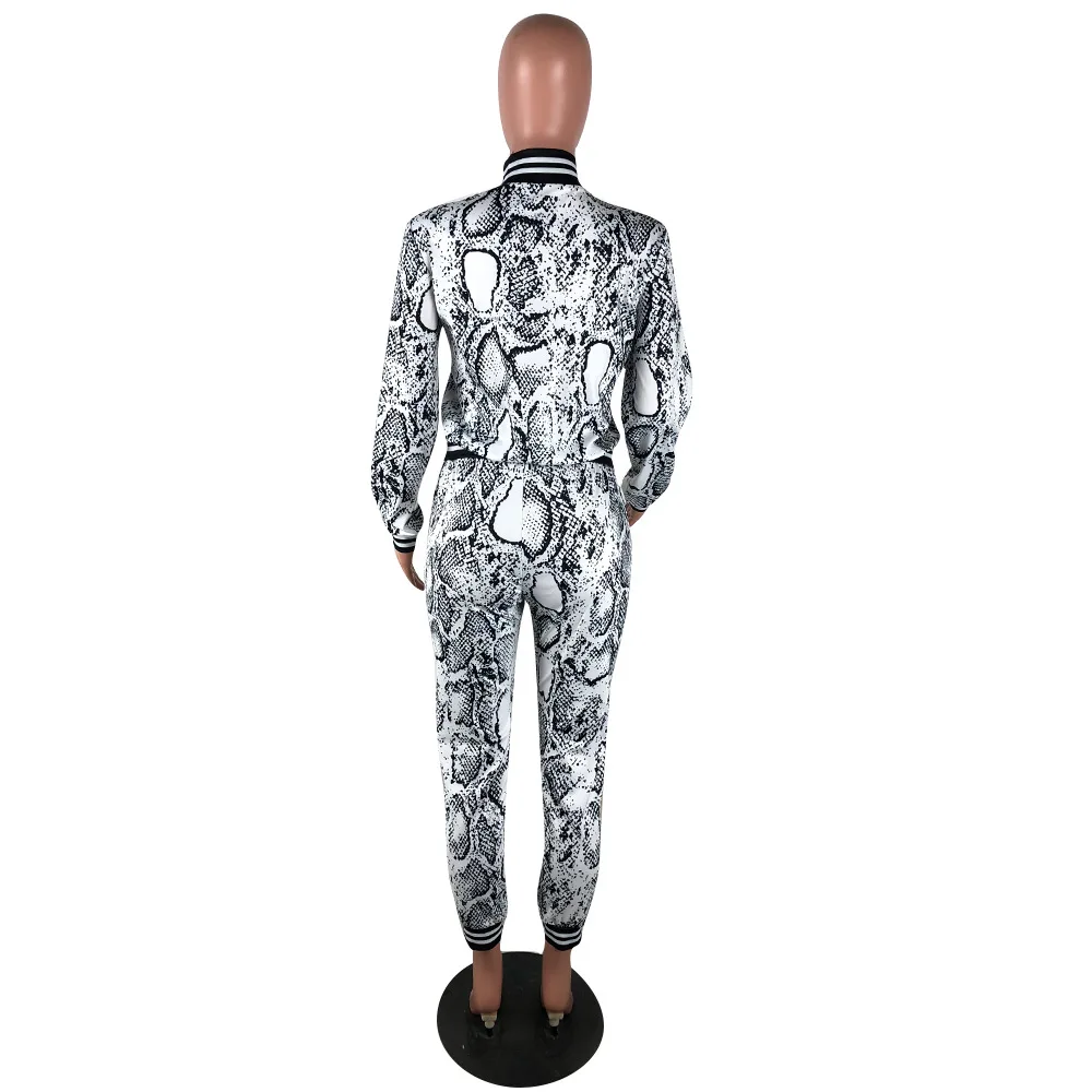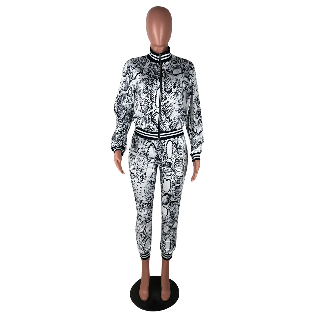 Женский Повседневный костюм из двух предметов, короткий жакет на молнии с длинным рукавом и брюки-карандаш со змеиным принтом, спортивный костюм большого размера icon star icon star icon star icon star icon star
