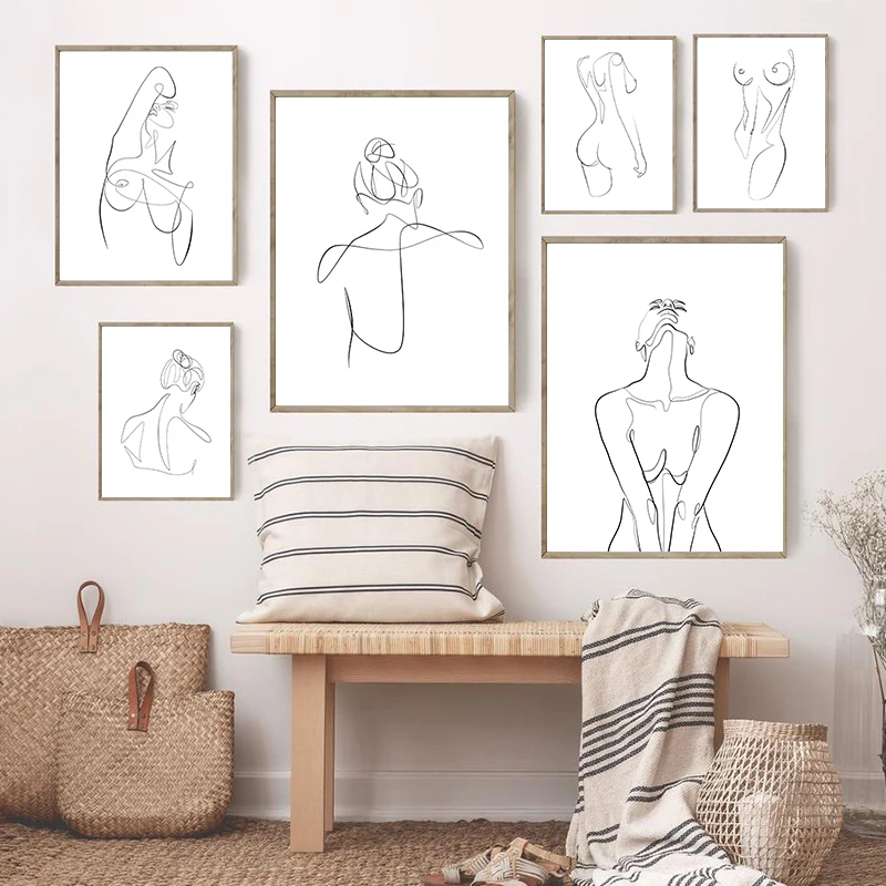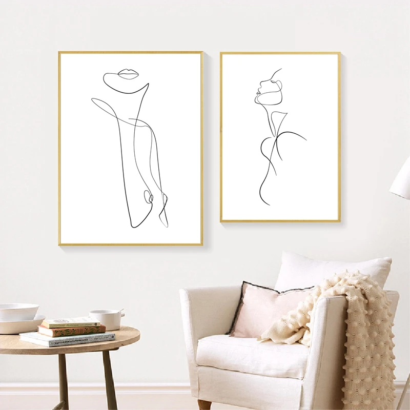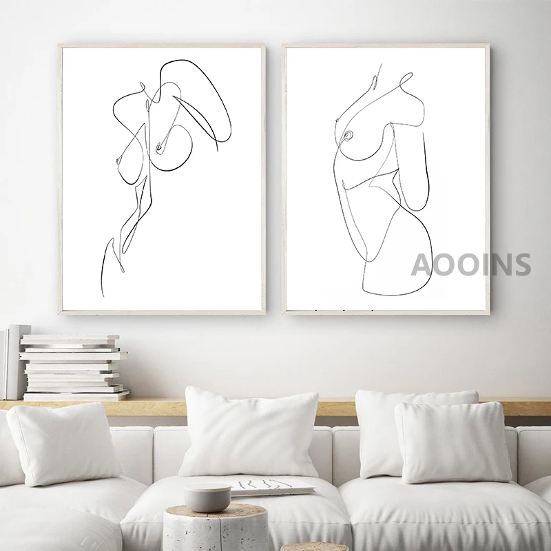 Абстрактная Обнаженная женщина, одна линия, рисование, Картина на холсте, принты, женская фигура в Стиле Ню, Минимальная линия, эскизный постер, домашний декор