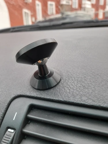 Отличный держатель! Телефон держит без проблем, липучку прилепил без обезжиривания и всё держится. Единственное, в месте окантовки шара не хватает выреза, что бы повернуть телефон немного вертикальнее, так как вертикальной поверхности в удобном месте на торпеде не нашёл. Но в целом прикольная приблуда.