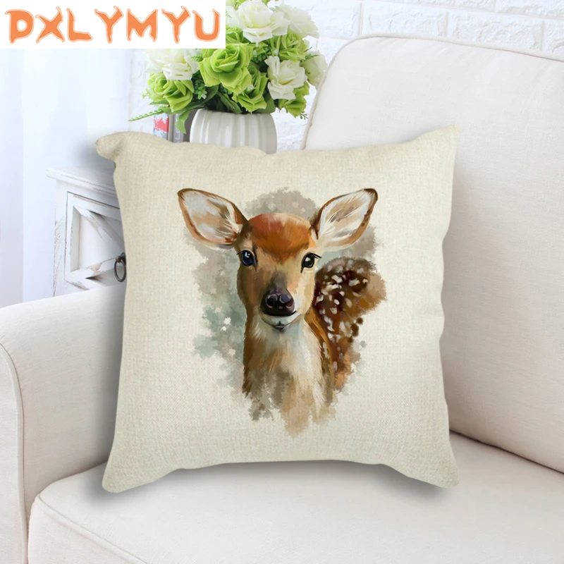 Наволочка из хлопка и льна, с изображением оленя, слона, лошади, медведя, декоративная подушка для дивана, 45x45, для домашнего декора