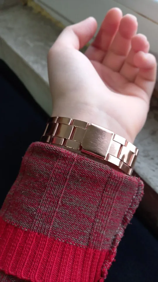 Часы дошли, очено долгая доставка. Идут. Оказались большими, пришлось с каждой стороны убрать по два звена. А так красивые)