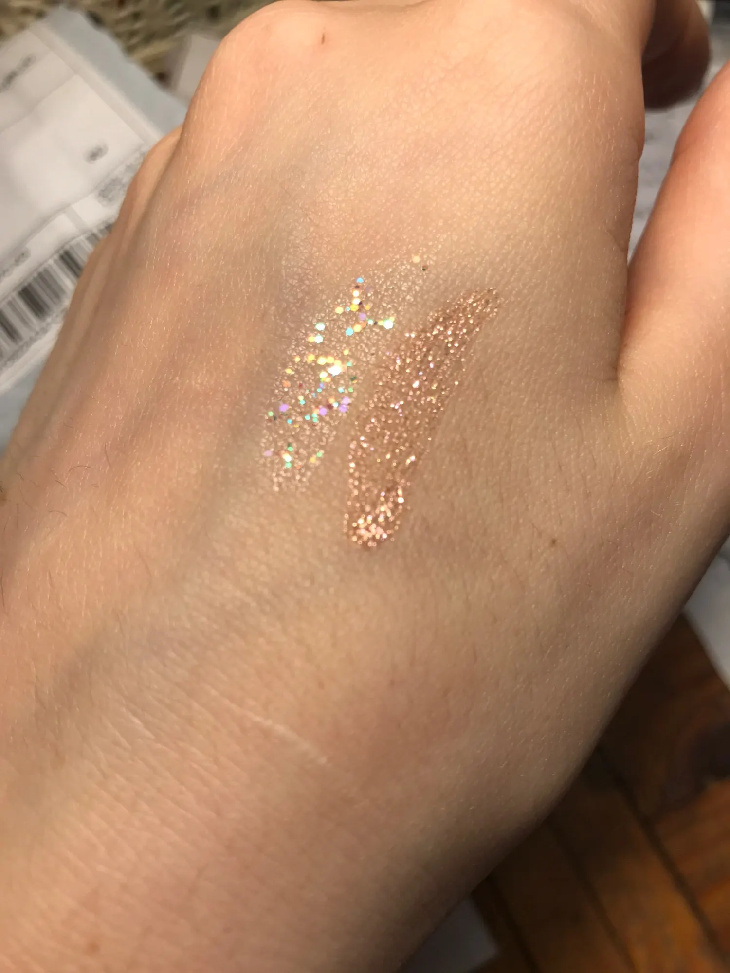 замечательные тени. с продавцом не общалась, пришло за 2 месяца. я думала, вообще посылка не придёт, как подобная мелочевка. по структуре как блеск для губ, из далека сияния особо не видно, вблизи под определённым углом видно эти блёстки, сами по себе они крупные