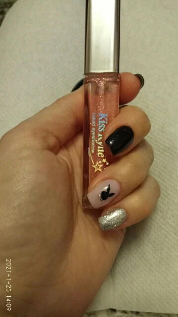 Никак не смогла передать на фото эффект, но тени на 10000% соответствуют картинкам! Оооочень классные! Просто супер! Жаль, что долго шли, ждала к новому году. Супер блестят, цвет обалденный, высыхают быстро, крепко держатся. Можно и на щёчки, и на губы. Обожаю и рекомендую!