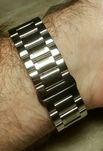 Заказ пришёл давольно быстро, заказала 27.11., а 11.12. уже получила. Браслет неплохой, боялась, что на женскую руку будет большим, но нет, все подошло и даже одно звено осталось в запасе. Так что девушкам тоже подойдёт по размеру. Заказывала цвет розового золота, но он отличается от того, что на картинке, не такой розовый, почти чисто золотой, но в принципе по цвету к моим часам подошёл. Как будет в носке проверим.