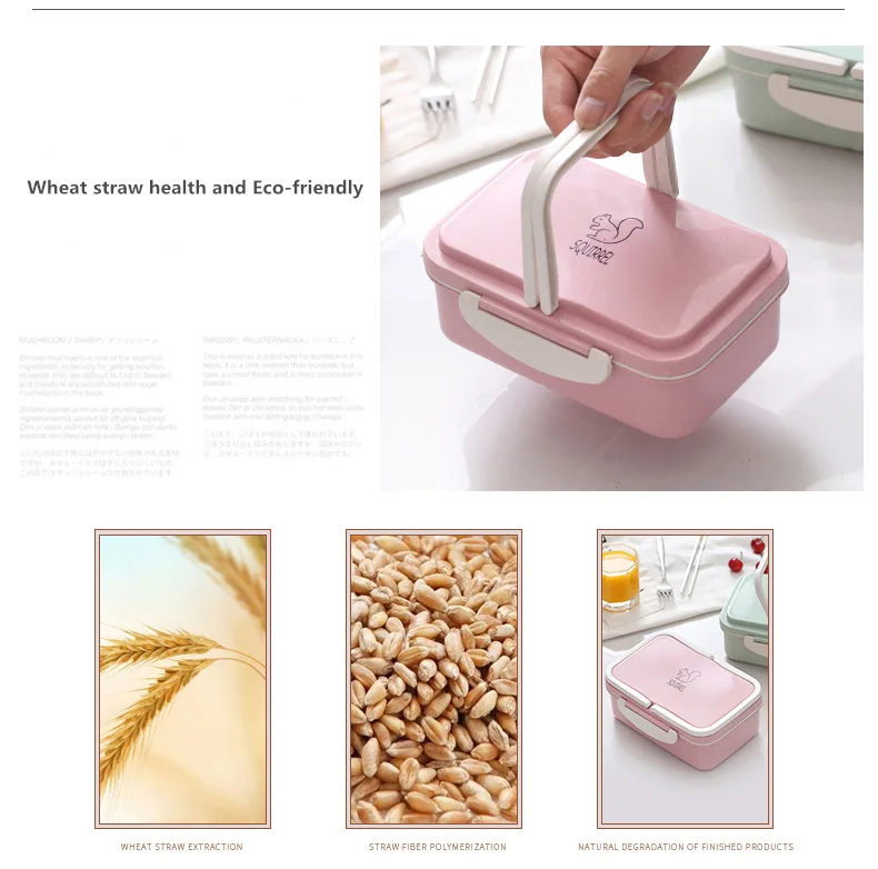 Портативный Ланч-бокс, контейнер для хранения еды из пшеничной соло...