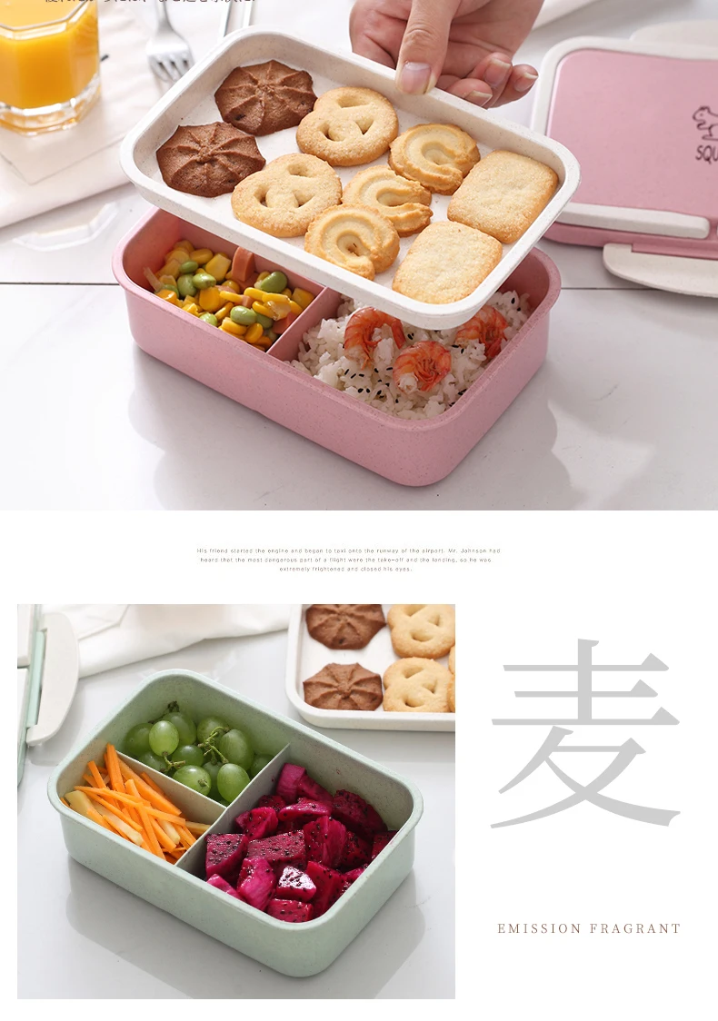 Герметичный Ланч-бокс бэнто для детей, школьный пищевой контейнер, японская коробка бэнто для микроволновой печи, детский Ланч-бокс из пшеничной соломы