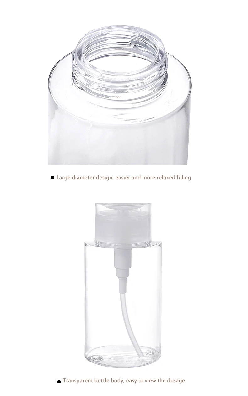 Особенности: 100% новые и высококачественные Размер: 100 мл/150 мл/200 мл Материал: PETG + PP Цвет: прозрачность Вес: около 40-55 г/шт. В комплект входит: 1 шт./упак. Функция: Защита окружающей среды PP материал крышки, безопасный и здоровый, износостойкий и прочный дизайн большого калибра, может более легко и легко прозрачный корпус бутылки, удобно проверить дозировку.