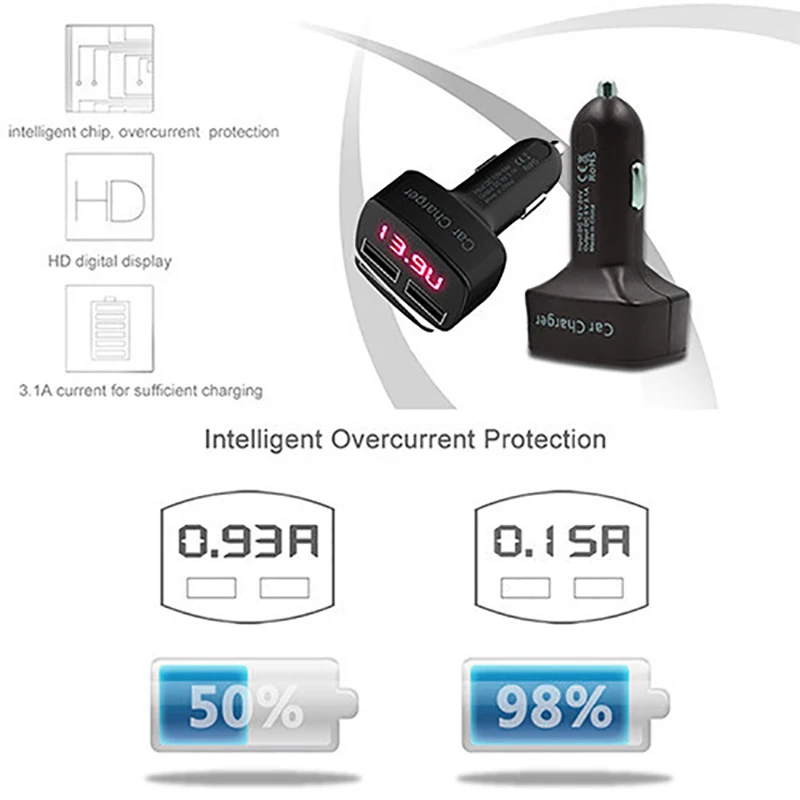 Автомобильное зарядное устройство с двумя USB-портами, 5 В, 3,1 А