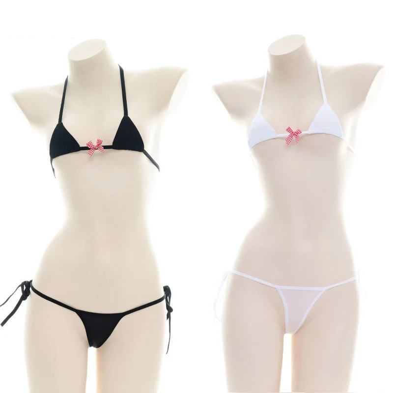Сексуальное нижнее белье из хлопка, черного и белого цветов, с маленькими чашечками, только для сосков, завязываются трусики