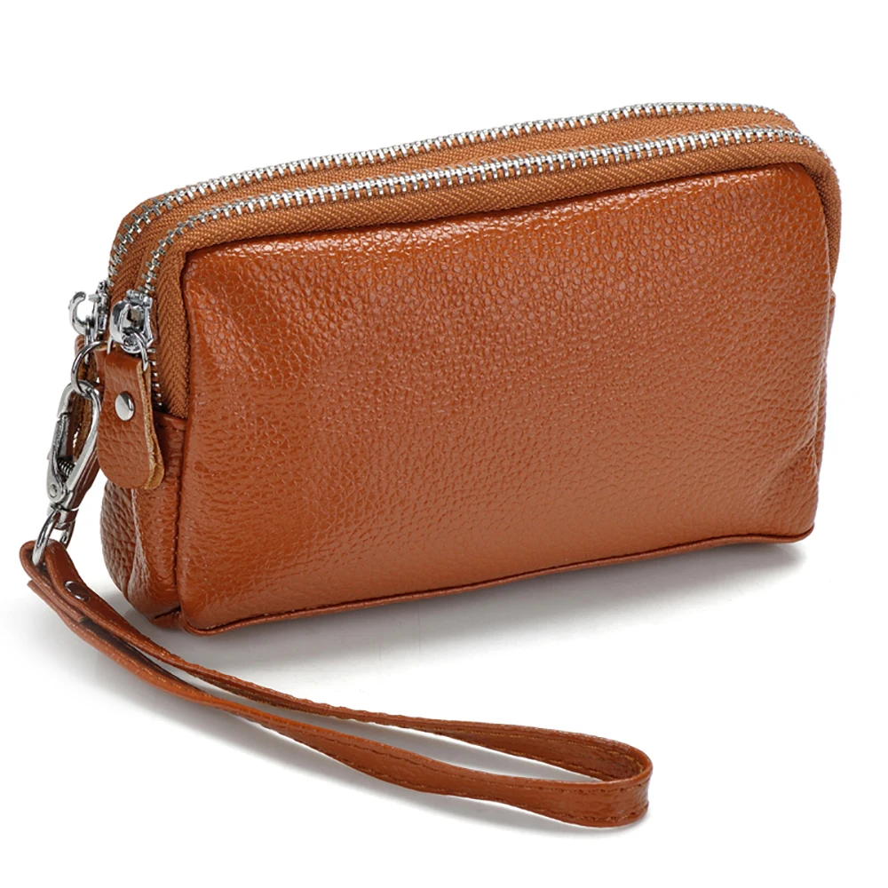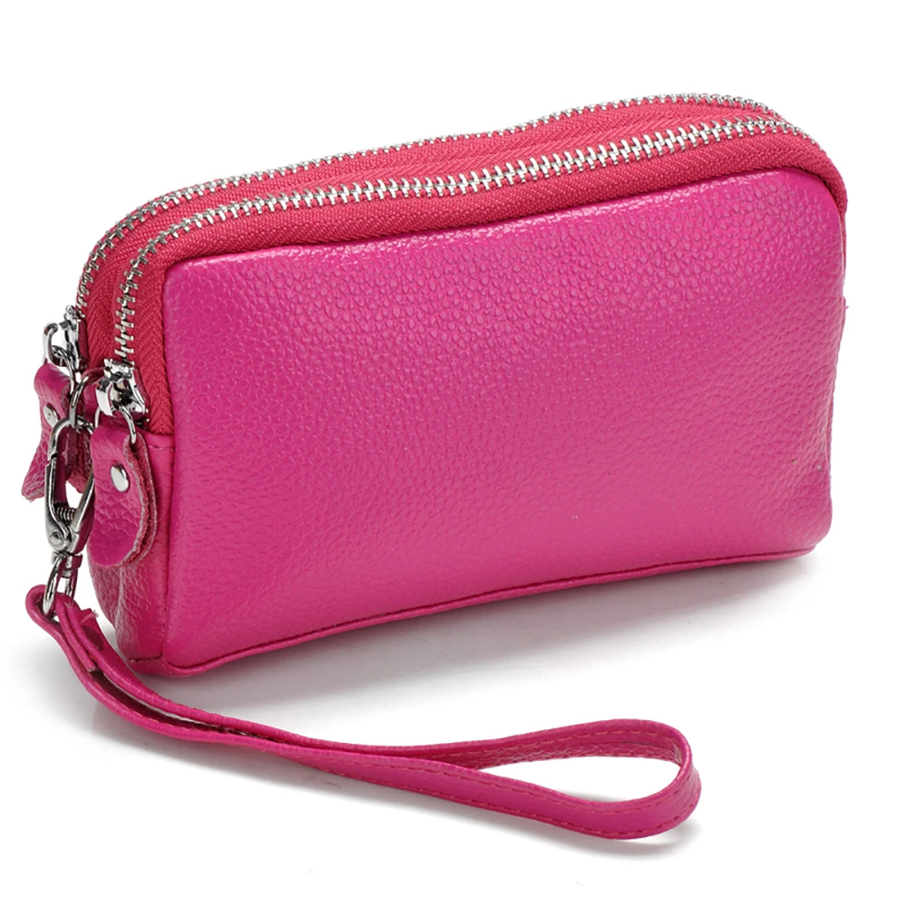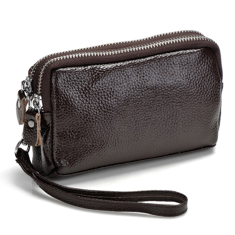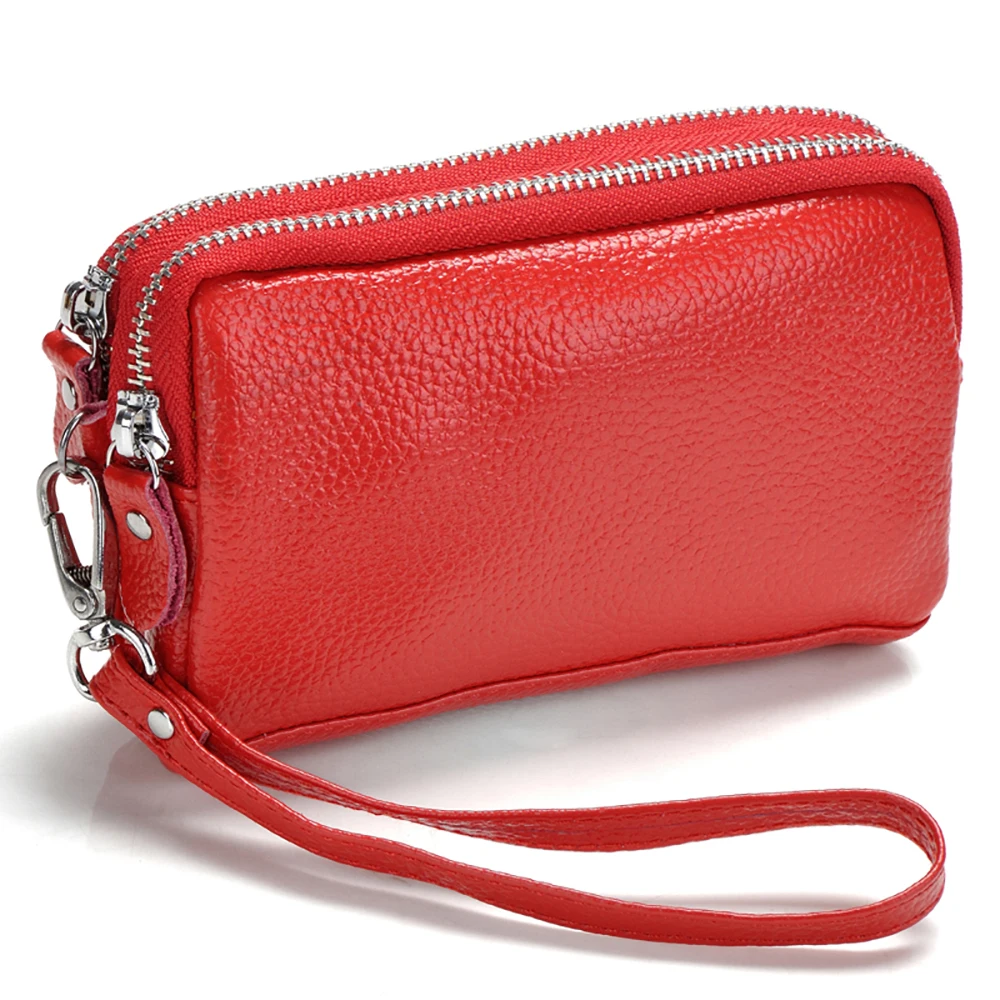 Модные женские бумажники из натуральной кожи, кошелек Rfid с двойной молнией, кошелек из воловьей кожи, женский клатч