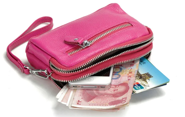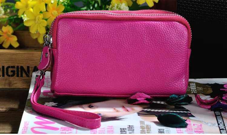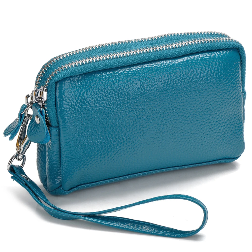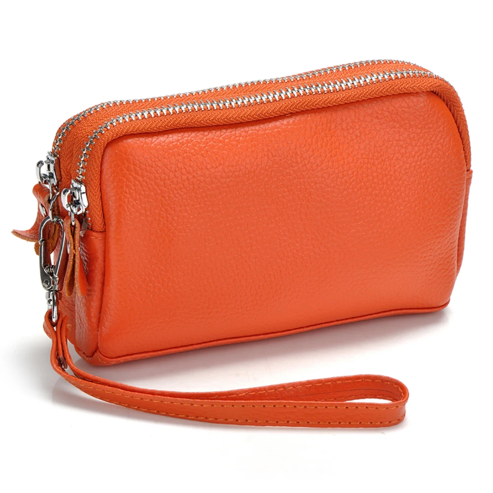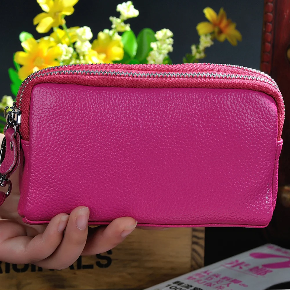 Модные женские бумажники из натуральной кожи, кошелек Rfid с двойной молнией, кошелек из воловьей кожи, женский клатч