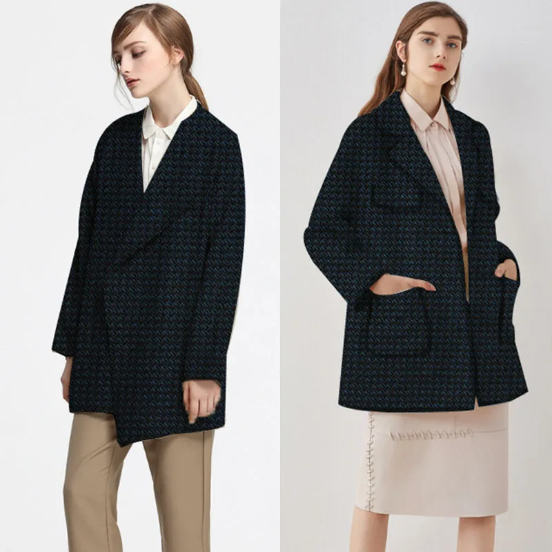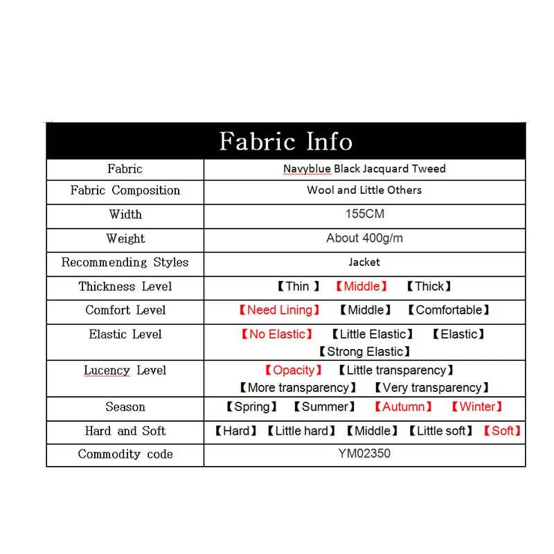 Ткань темно-синяя черная жаккардовая твидовая шерстяная ткань стандартная Осенняя Женская куртка ткань для шитья бесплатная доставка