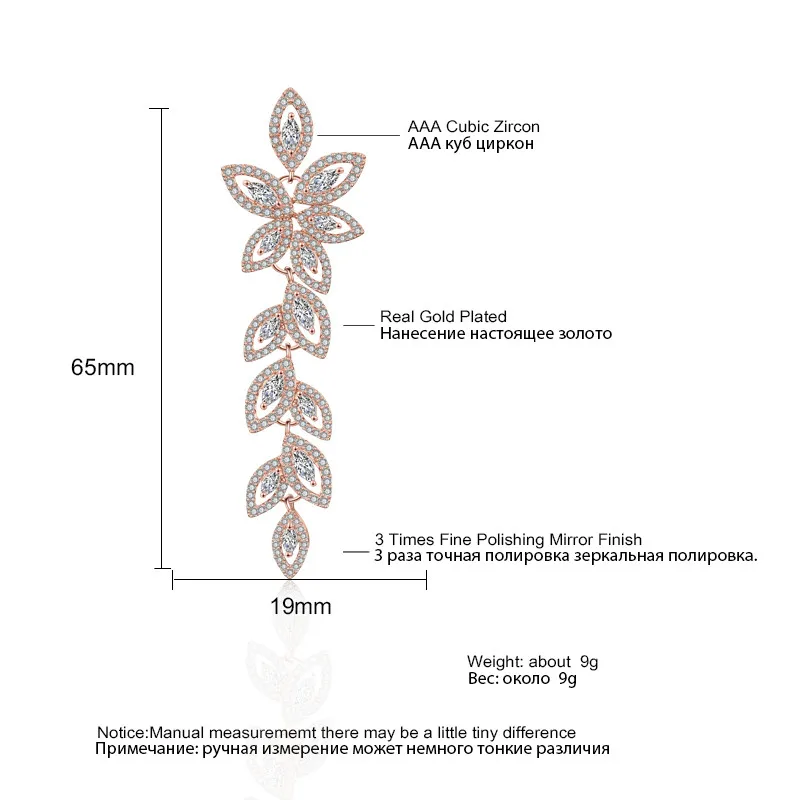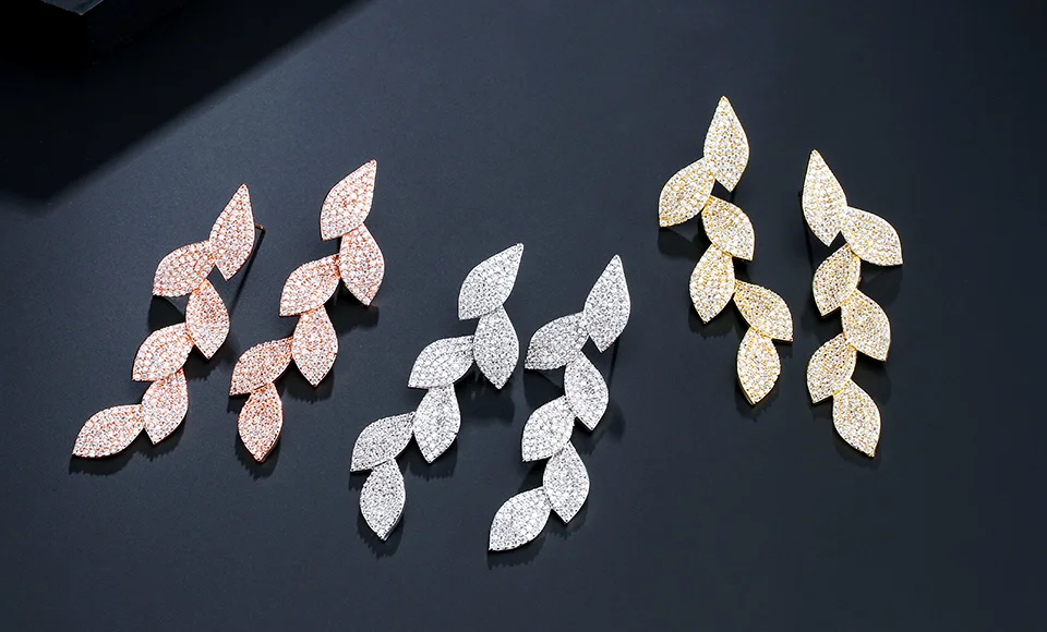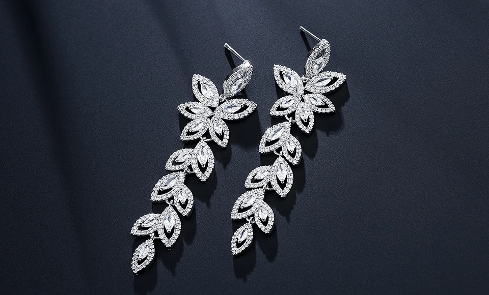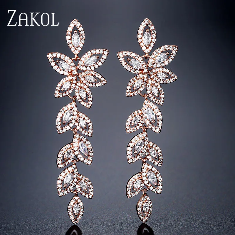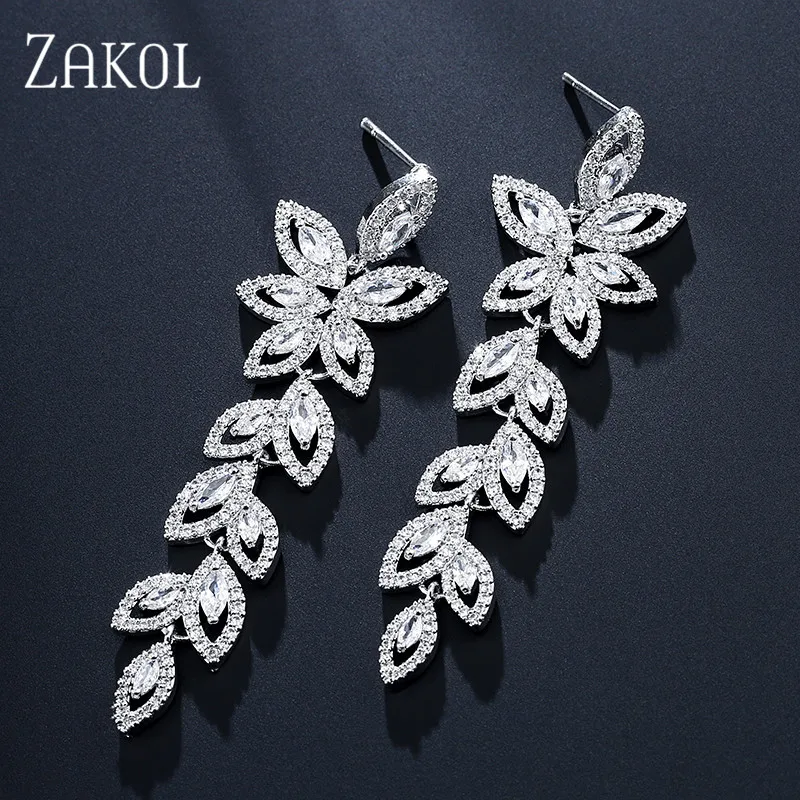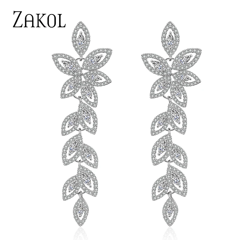 ZAKOL модные циркониевые Кристаллы Свадебные Длинные серьги-подвески для женщин Листья Свадебные обручальные вечерние велирные изделия FSEP2348