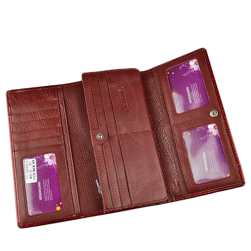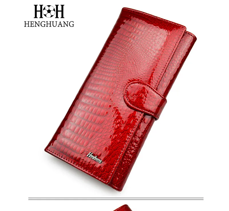 Модные красные женские кошельки из натуральной кожи, длинные бумажники из кожи аллигатора, Дамский кошелек с кармашком для мелочи и кредитницей для женщин
