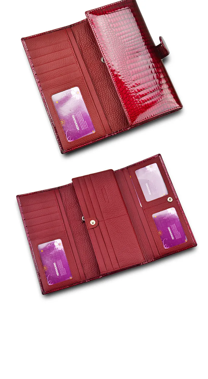 Модные красные женские кошельки, кошелек из натуральной кожи, Длинные кошельки из кожи аллигатора, Дамский кошелек с карманом для монет и карт, женский кошелек