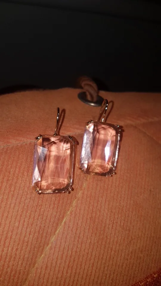 товар шёл около 2.5 месяцев, трекинг на территории страны получения совсем не прослеживался; серьги красивые, яркие, камни прозрачные и большие, выглядят потрясло. минус-тяжелые, на пару часов носки, дальше уши устают. в наборе идут 2 прозрачные насадки на дуги, чтобы серьги не потерялись