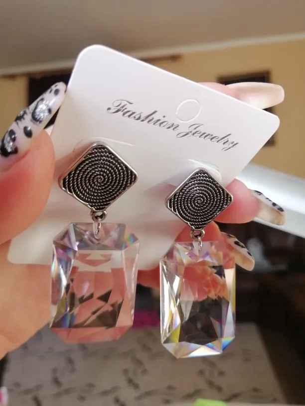 Женские серьги-подвески, из прозрачной смолы, квадратные, акриловые, в богемном стиле, свадебные украшения