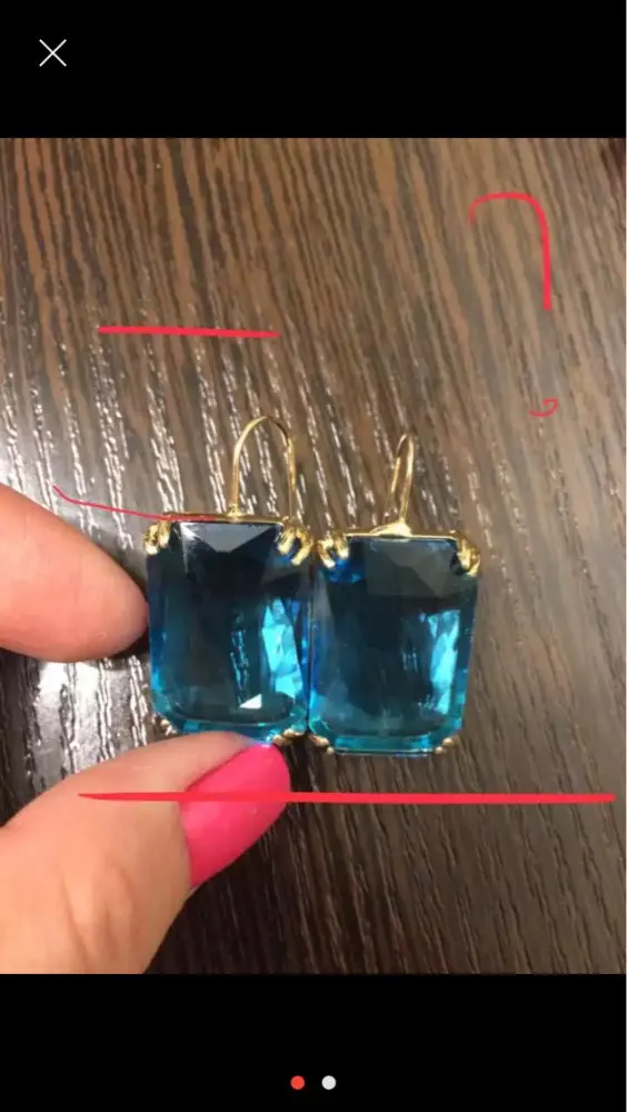 Заказ сделала 28 августа, бросили в почтовый ящик 13 октября. Серьги целые, крупные, прислали с заглушками, весят 5 гр, размер кристаллов 2,6х1,8 см. Один минус, пришли с погнутыми швензами, но легко поправляет ся руками. С продавцом не общалась.