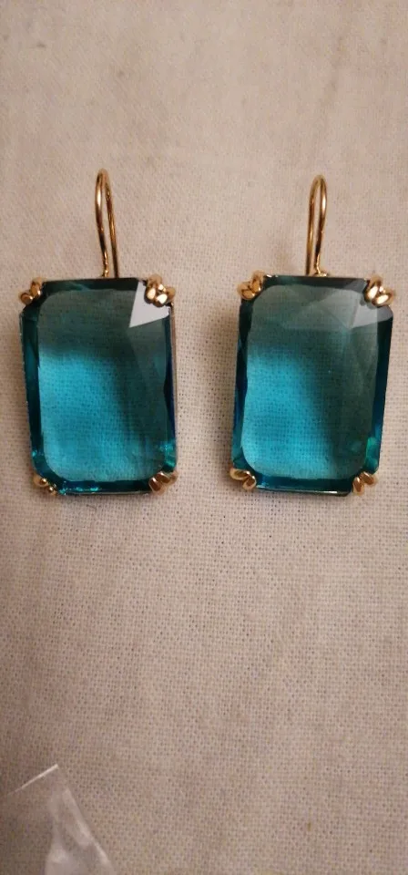 серьги очень красивые. стекло. переливаются на солнце. достаточно увесистые. заказом довольна. пришли очень быстро за 20дней.