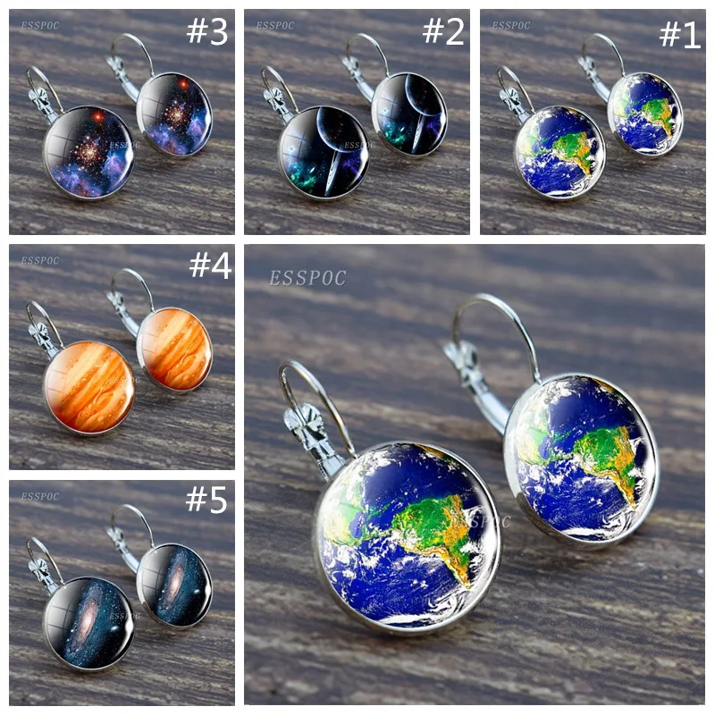 Серьги в виде Галактики, Юпитер, Сатурн, земля, серебряный цвет, серьги-крючки, космос, астрономическая планета, серьги, подарки на день рождения