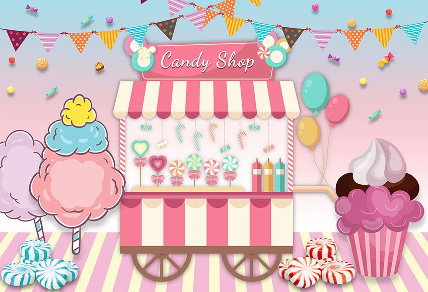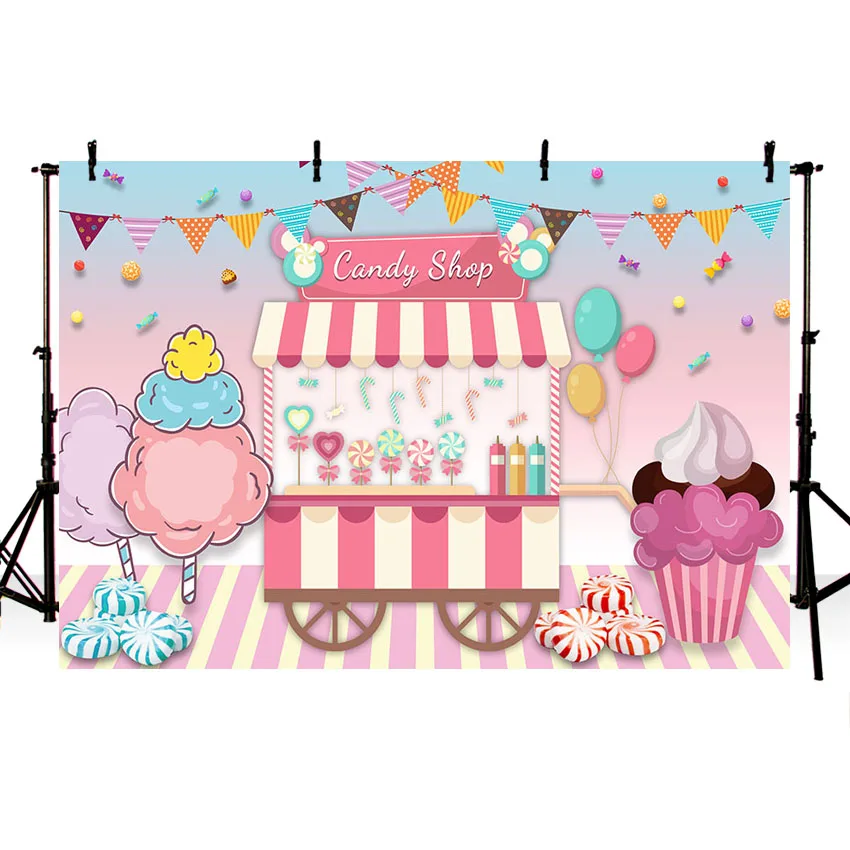 Фон для студийной фотосъемки с изображением конфет магазина мороженого флагов шаров детей