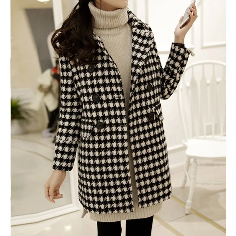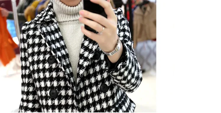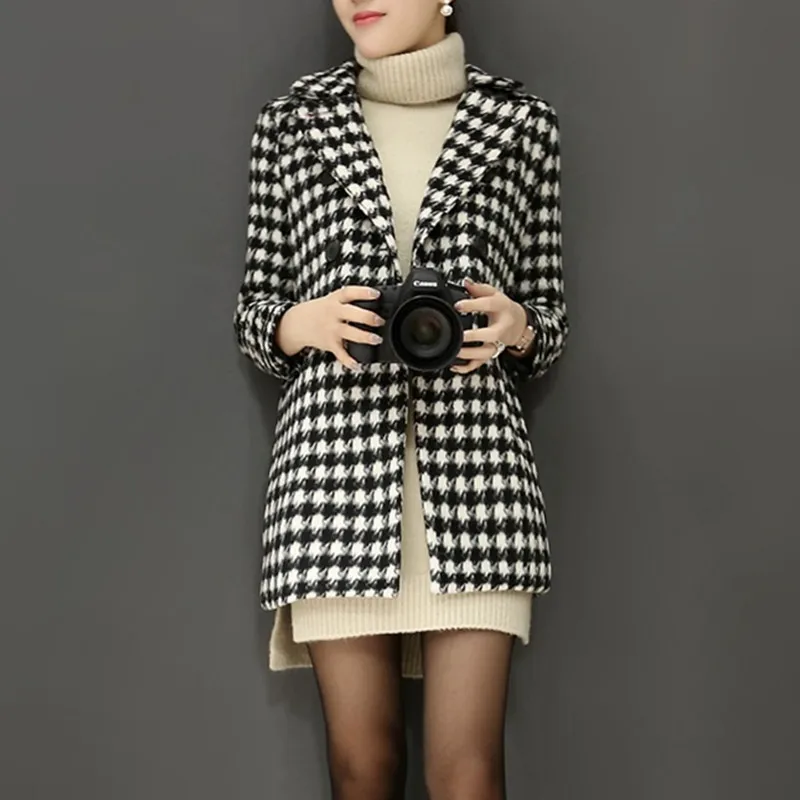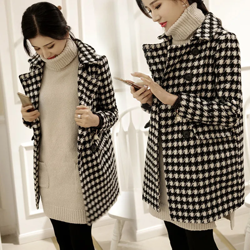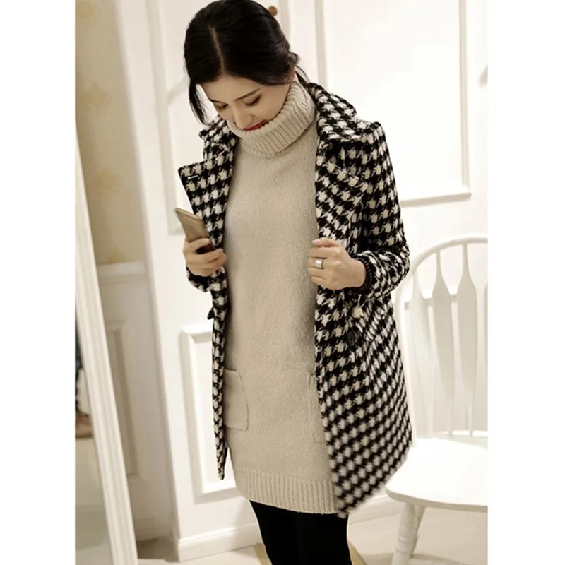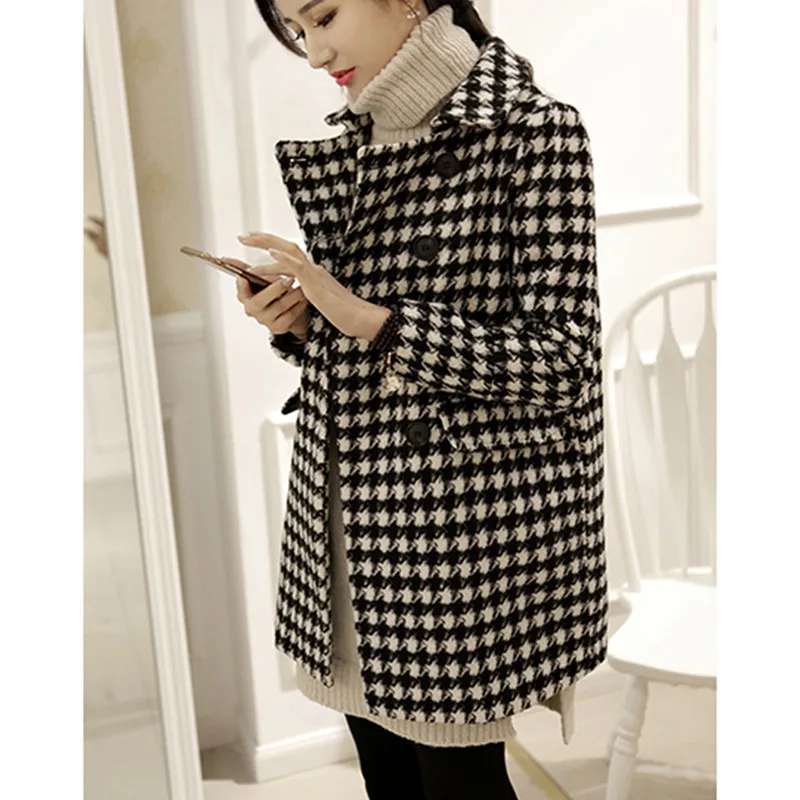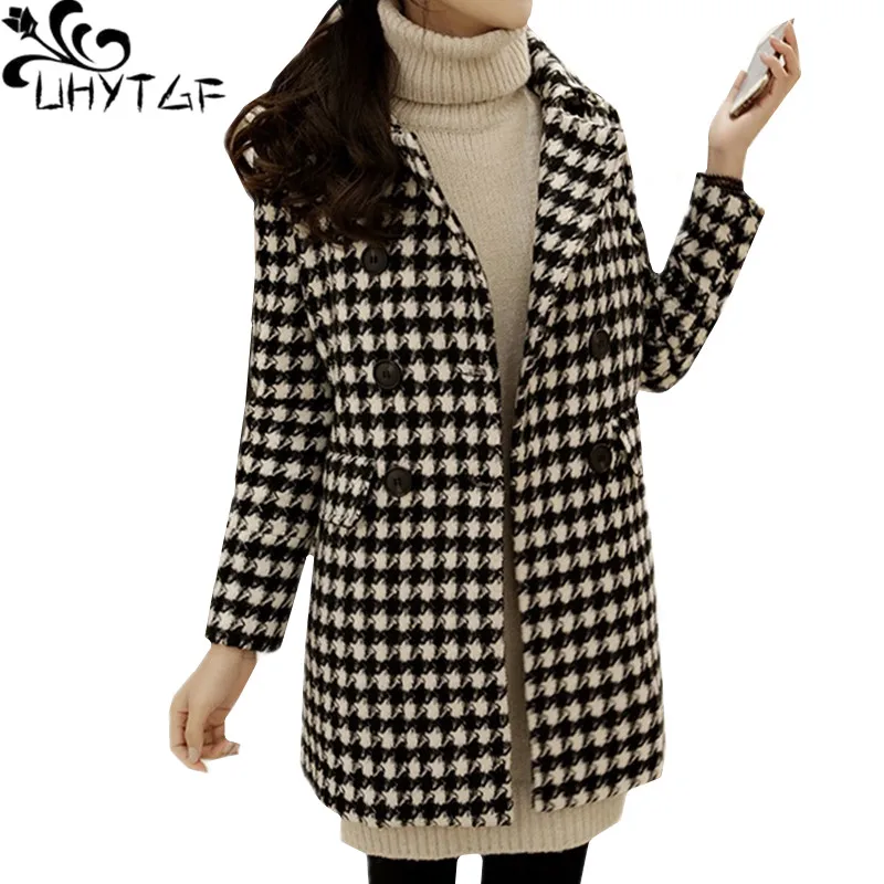 Женское шерстяное пальто UHYTGF, осенне-зимнее пальто в клетку, элегантное женское двубортное повседневное шерстяное пальто, Модель 340