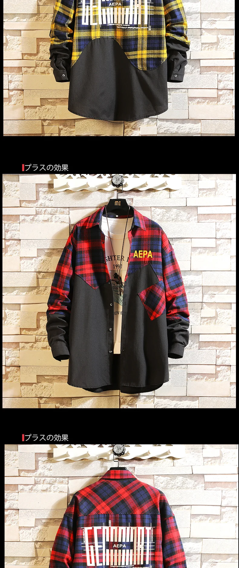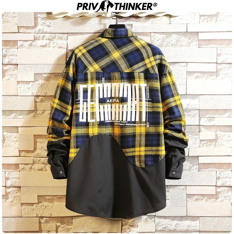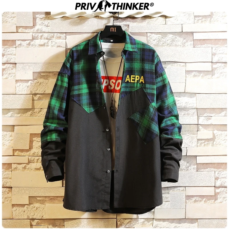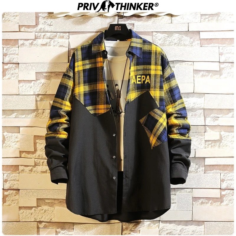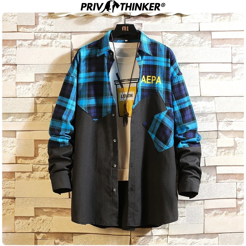 Мужские повседневные рубашки в стиле пэчворк Privathinker, корейские красочные рубашки, Мужская Осенняя винтажная мода, мужские топы, модель 5XL, 2020