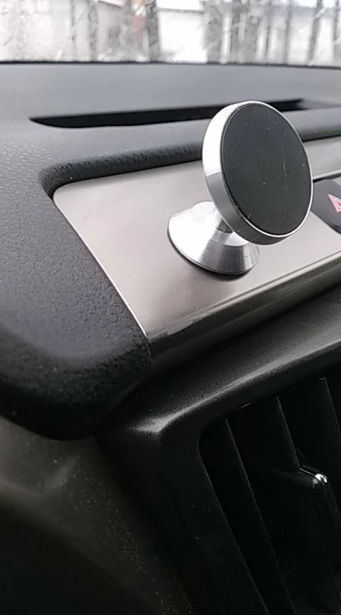 Ну такое... Вроде всё не плохо. И магнит не слабый, но сама штуковина уж очень маленькая. Подойдёт только для небольшого телефона. Да и двойной скотч к панели не вызывает доверия. Для телефона советую взять что-нибудь другое. У меня есть в дефлектор с двумя крепежами, вот он супер.