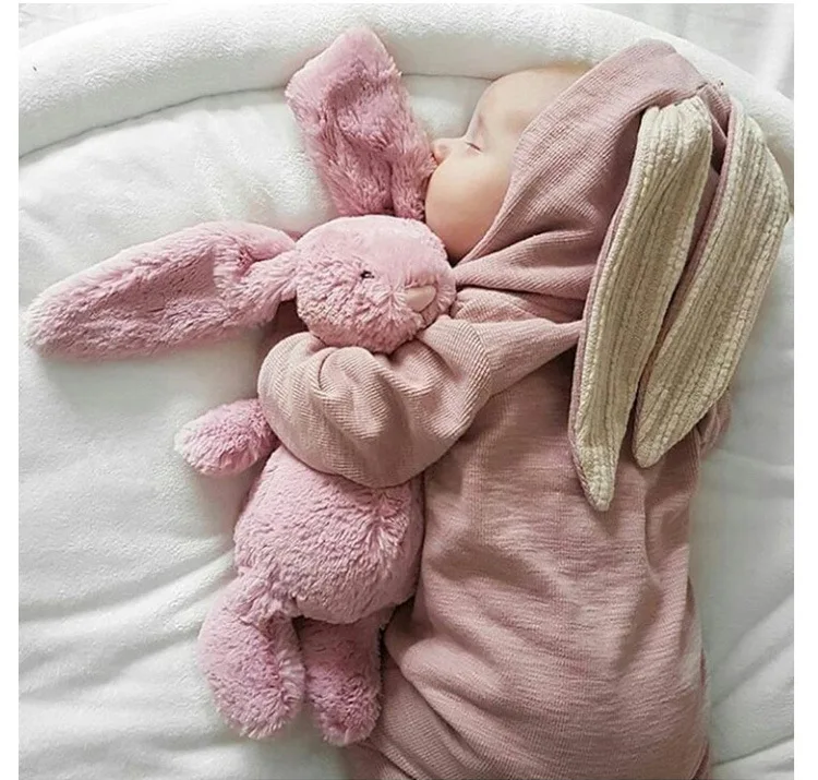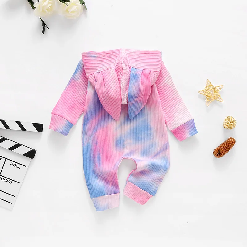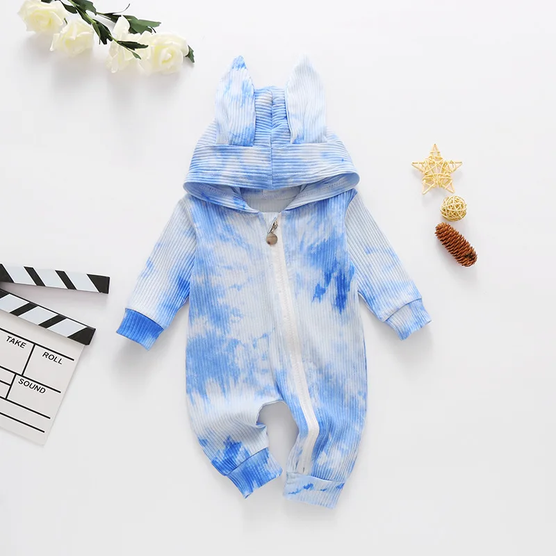 Комбинезон детский хлопковый на молнии, с заячьими ушками