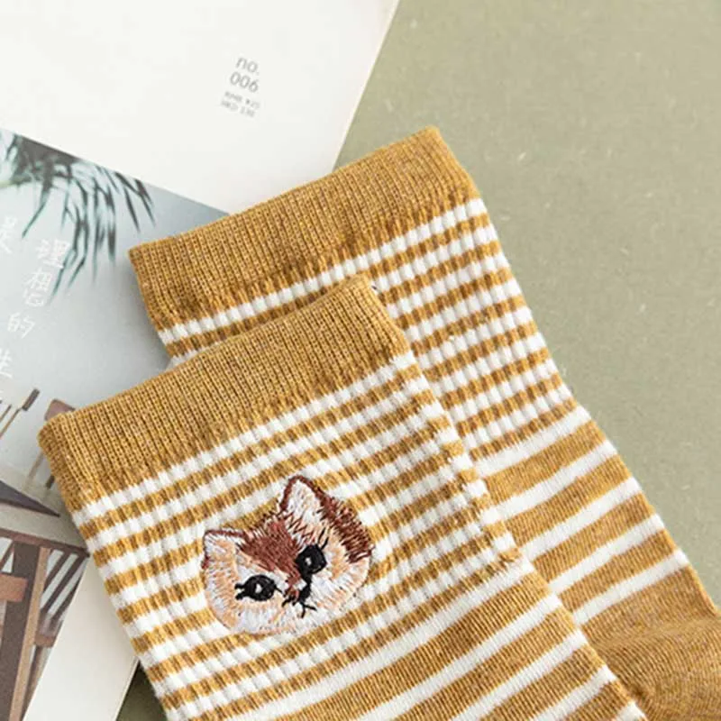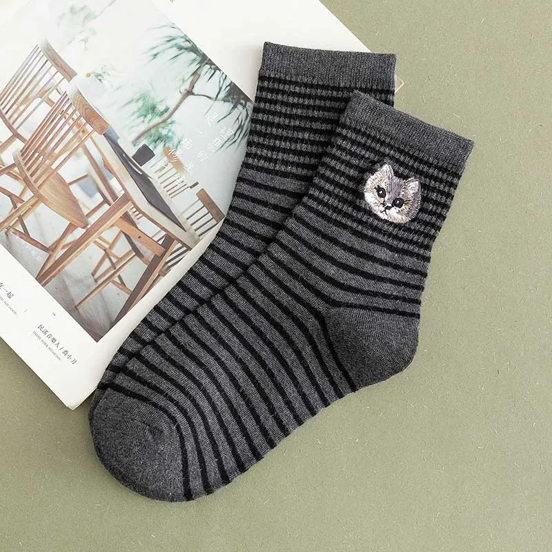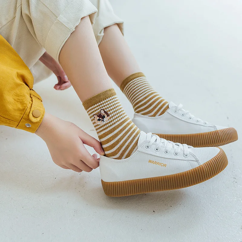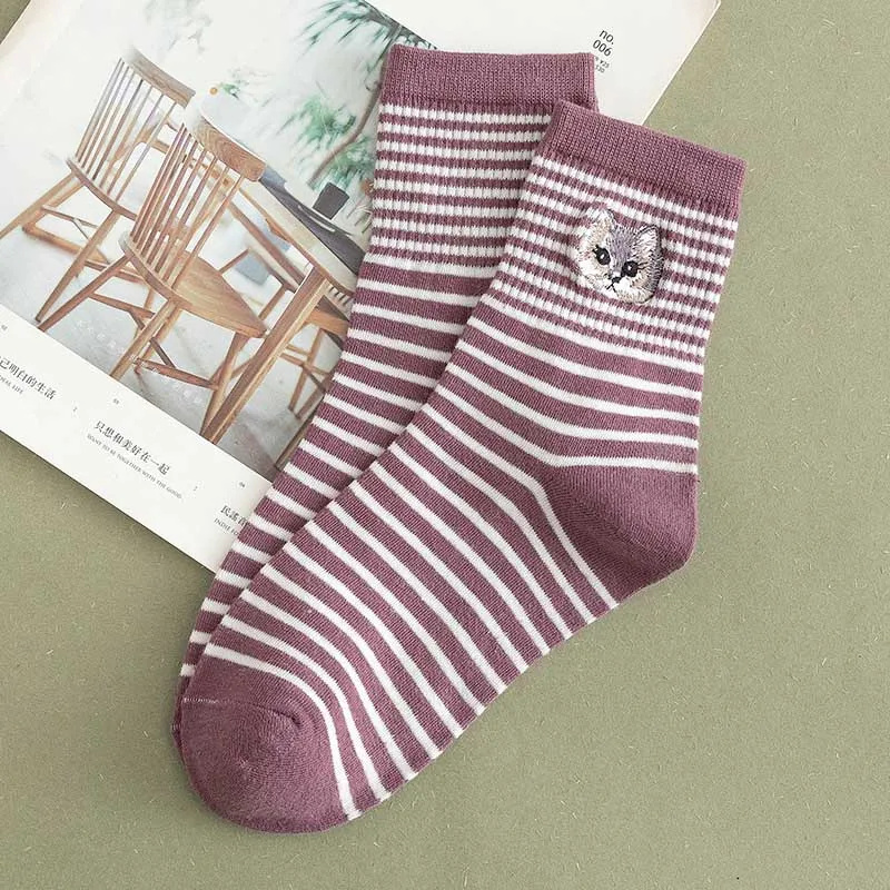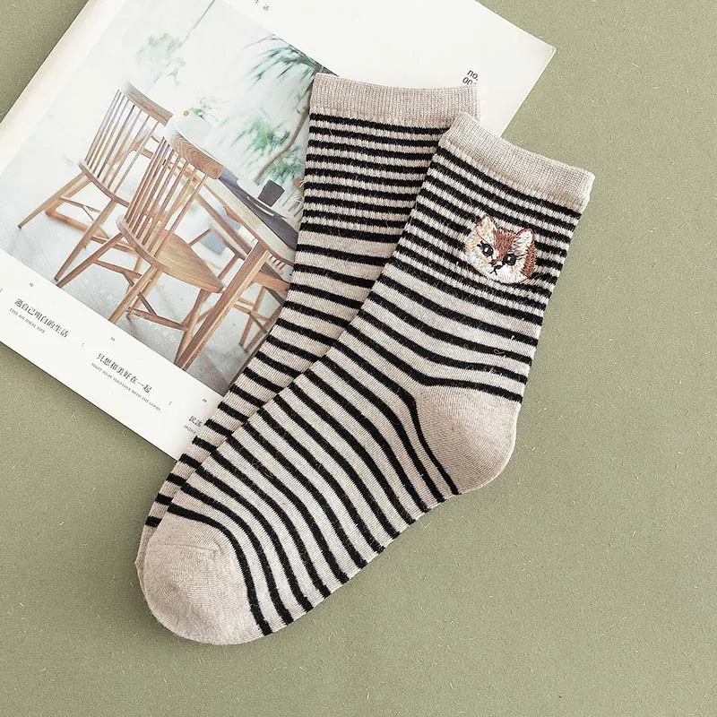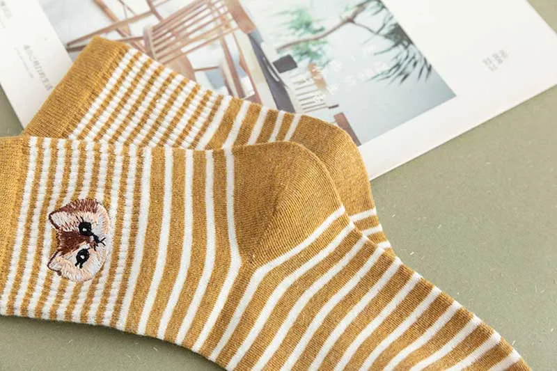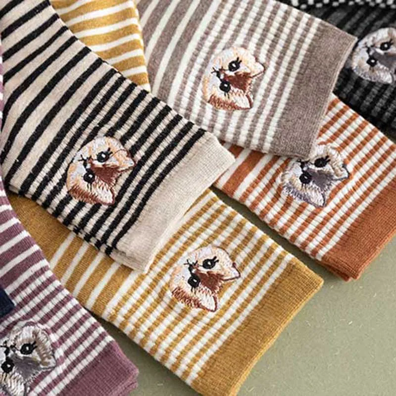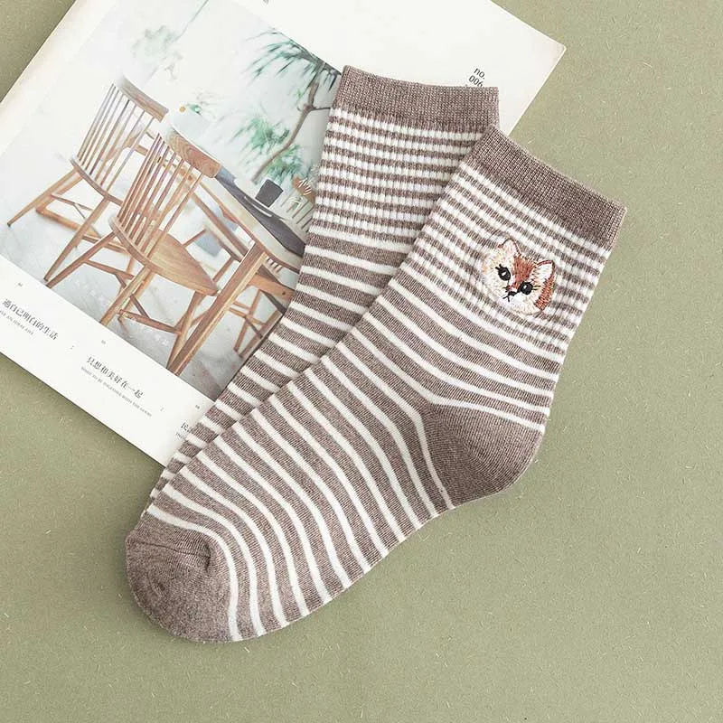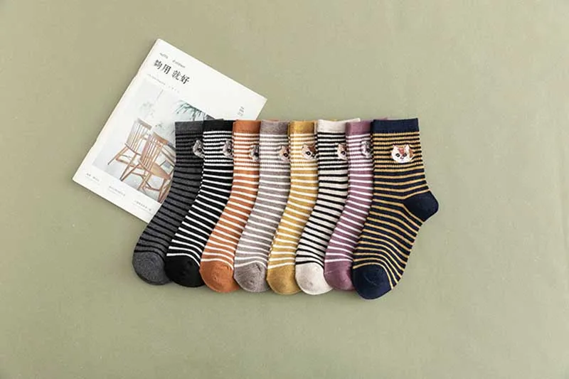 Забавные носки в полоску с вышивкой в виде животных, милые корейские носки в стиле Харадзюку, женские Веселые Творческие носки в студенческом стиле