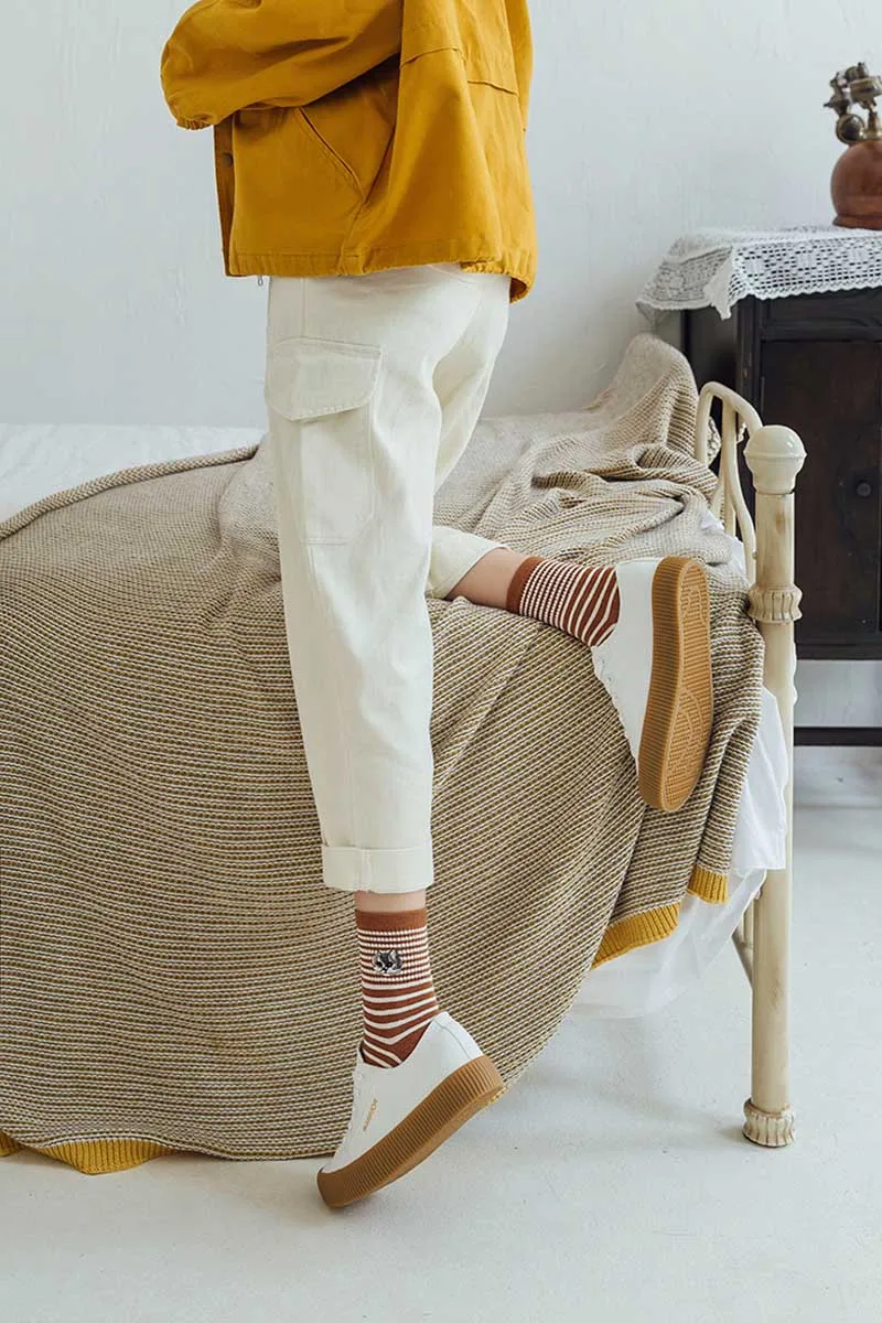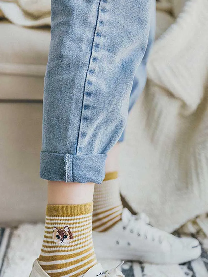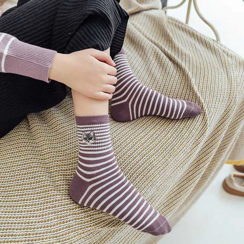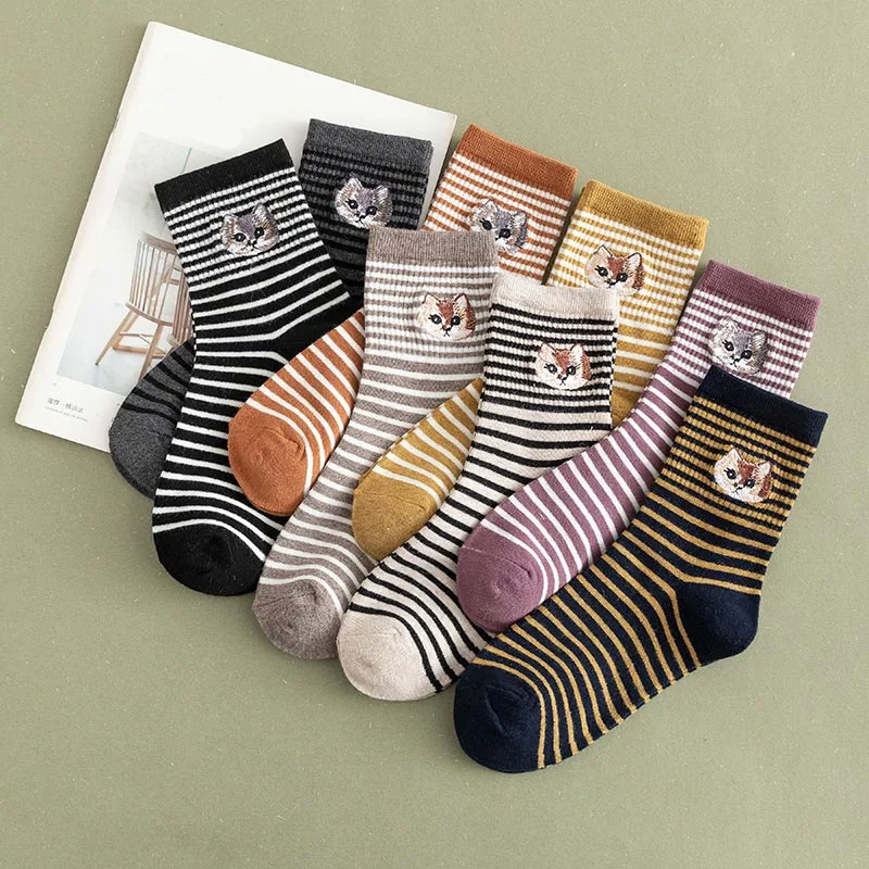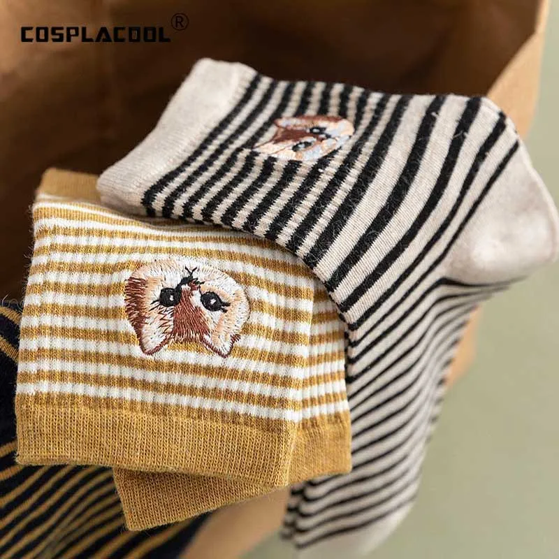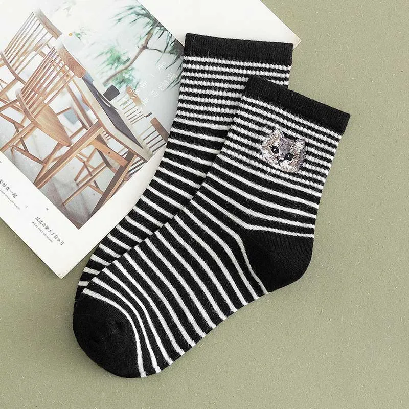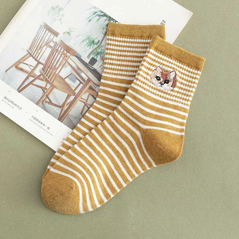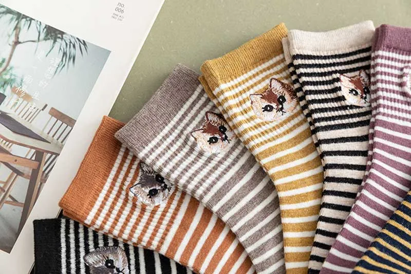 Забавные носки в полоску с вышивкой в виде животных, милые корейские носки в стиле Харадзюку, женские Веселые Творческие носки в студенческом стиле