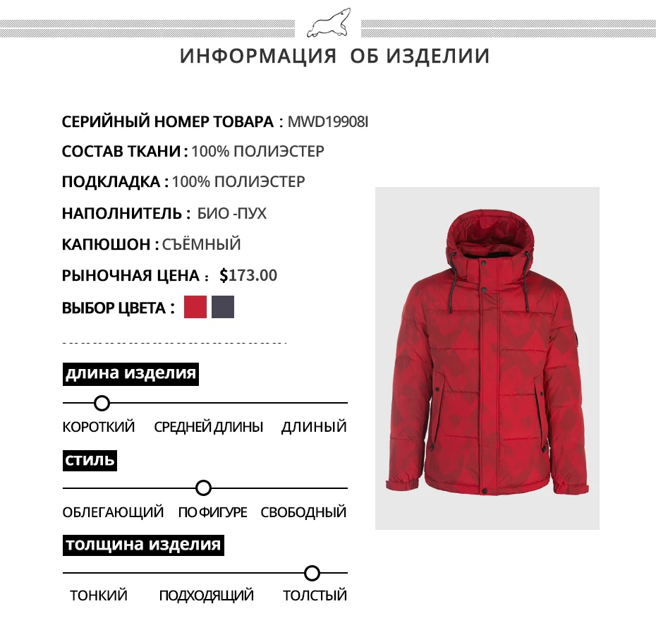 Мужская зимняя куртка ICEbear, ветронепроницаемое теплое пальто, MWD19908I, новинка 2019