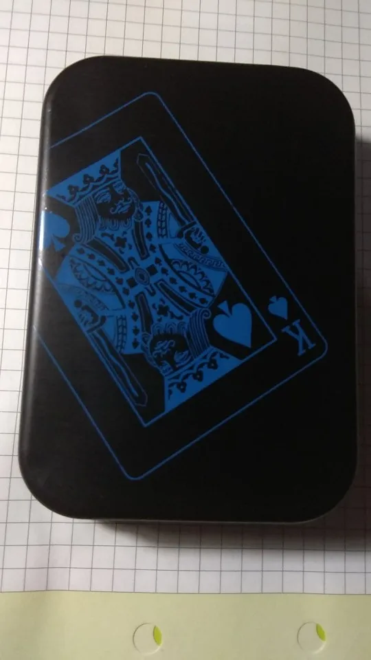 Материал карт очень хорошего качества! Металлическая коробка очень хорошая. Синие немного темнее... Трудно увидеть, что говорит карта.