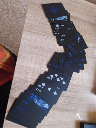 Это очень хорошая колода, она очень управляемая и качество карт, как указано, хорошая, гибкая и может быть легко смешана, Я только что вижу недостатки, и это то, что синий цвет очень темный, а так как буква черная, вы не можете видеть сердца и ромбос очень хорошо, Но в противном случае все в порядке.