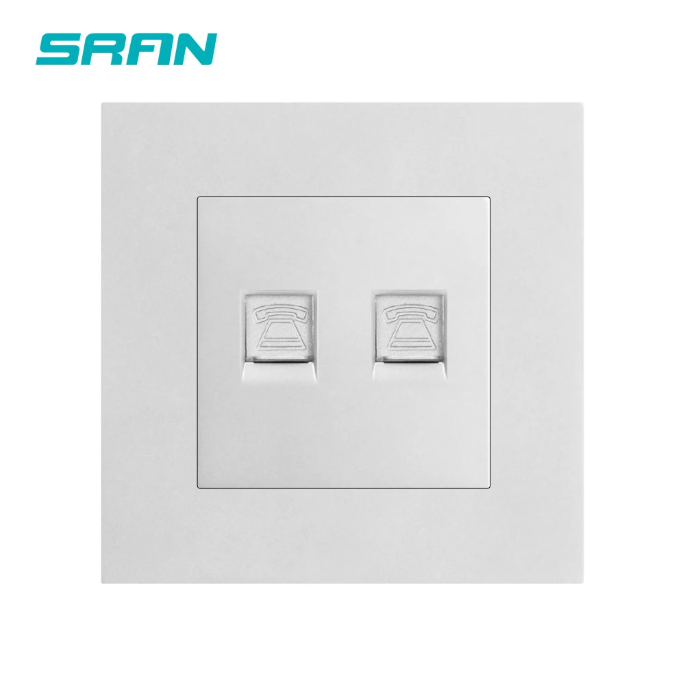 Настенная розетка SRAN с двойным телефоном, электрическая розетка, огнестойкая панель из поликарбоната, 86 мм * 86 мм, аксессуары для украшения дома, 2 комплекта, RJ11