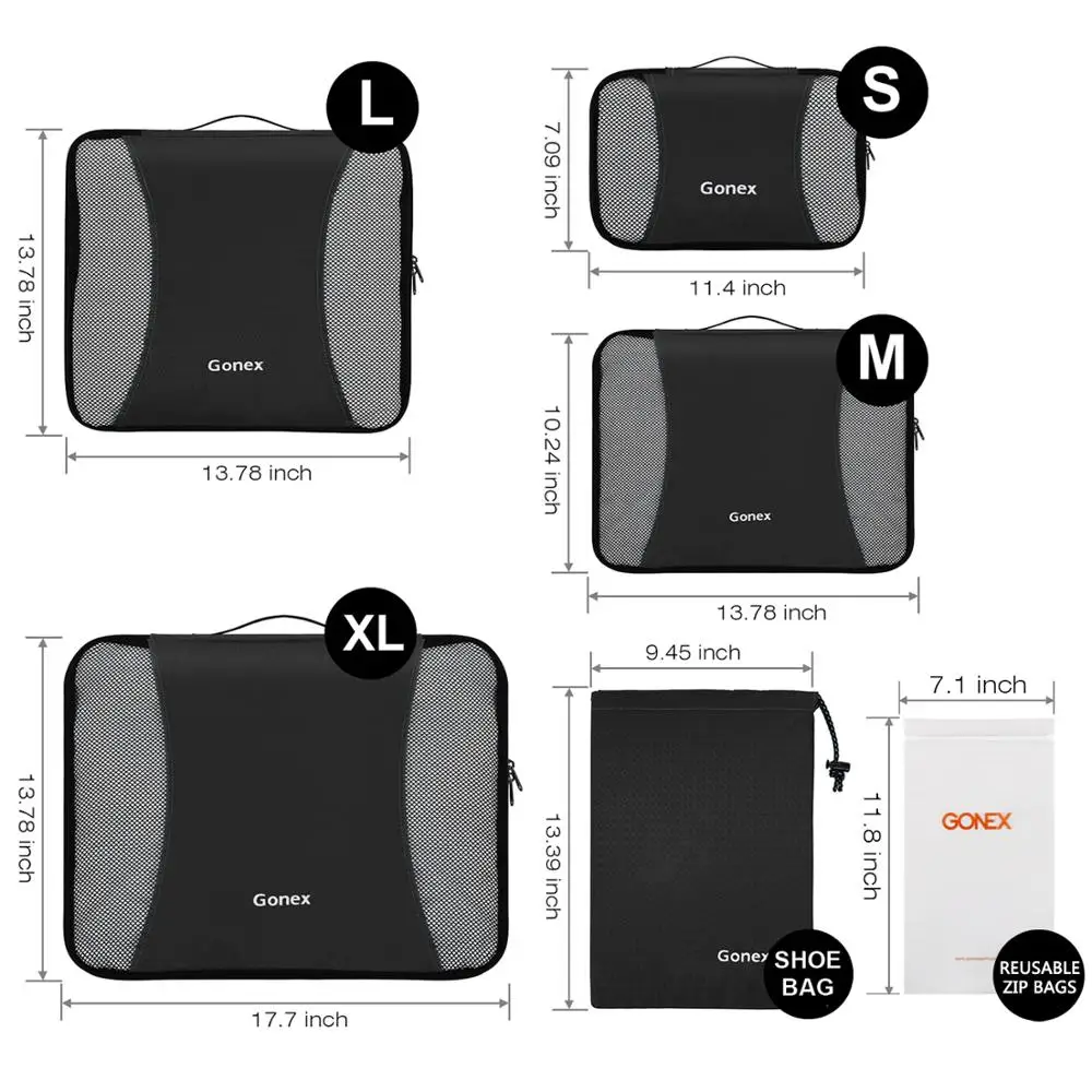 Набор упаковочных кубиков Gonex, 5 универсальных ультралегких дорожных органайзеров, 4 многоразовых пакета на молнии