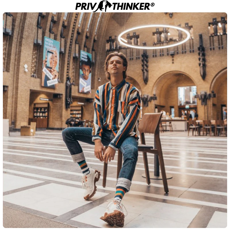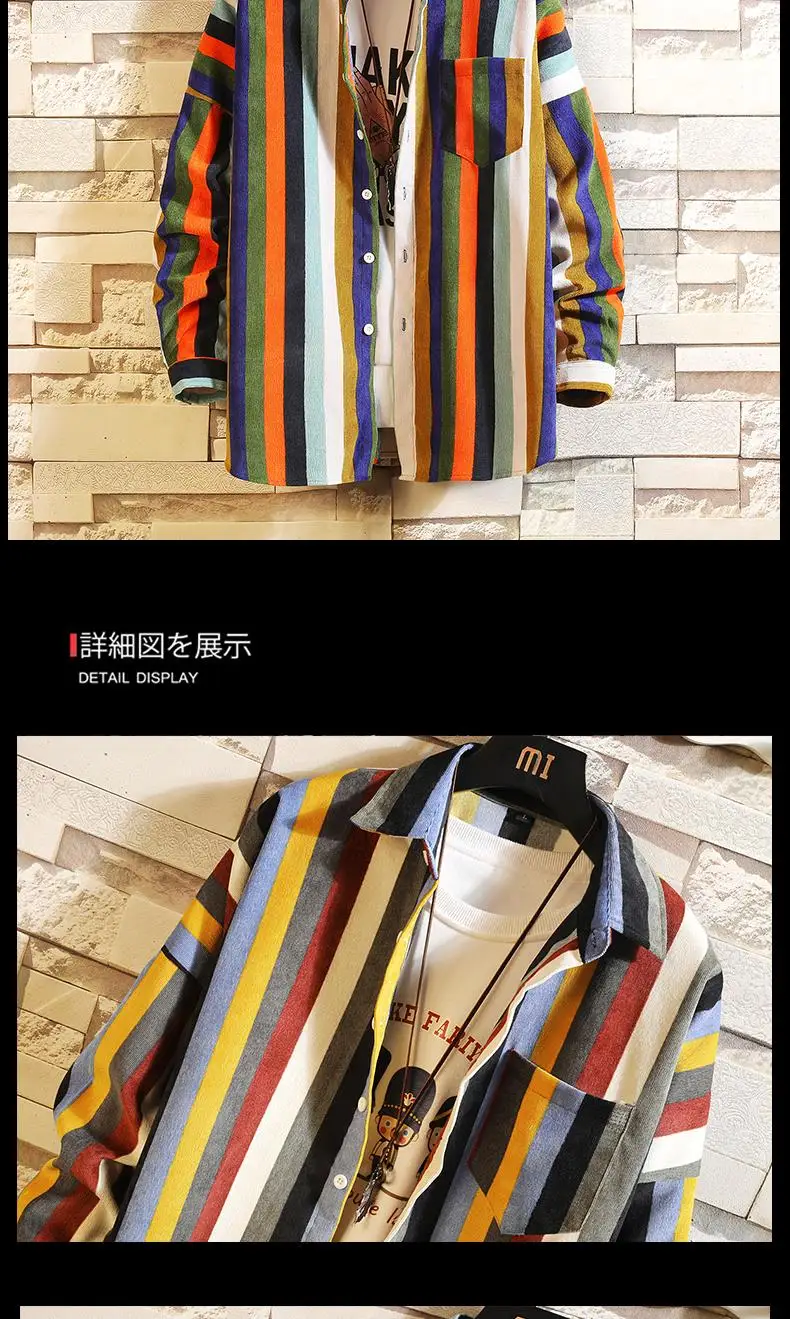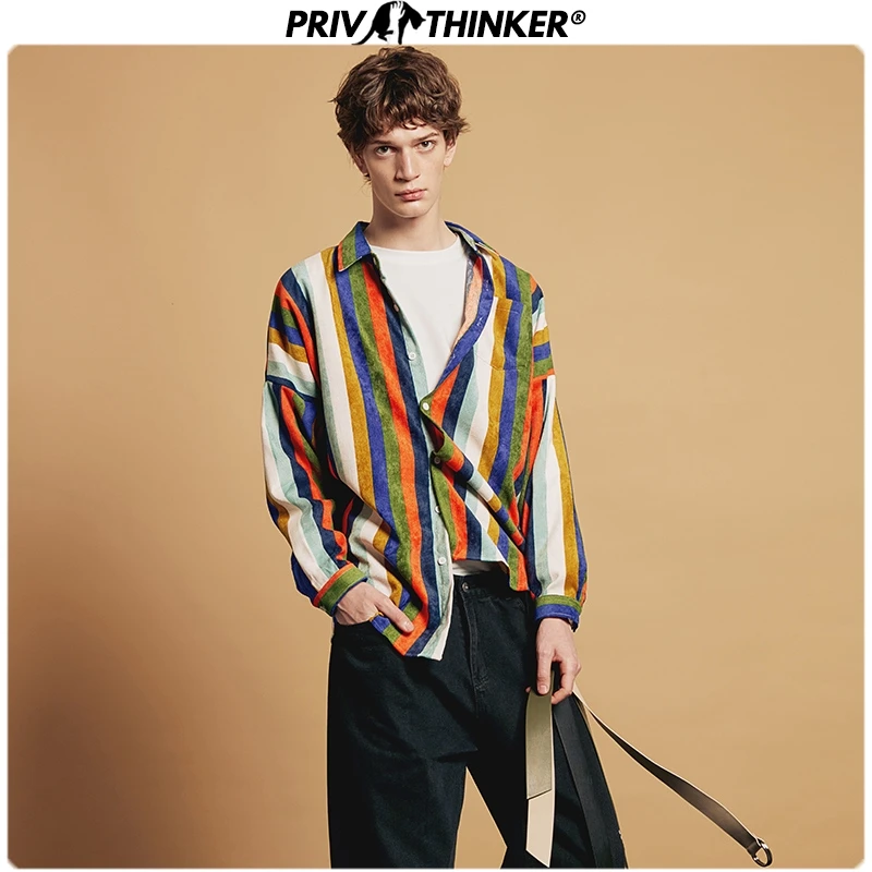 Мужская полосатая рубашка Privathinker, Повседневная Базовая рубашка с длинным рукавом, в японском стиле, цветная, в Корейском стиле, на весну, 2020
