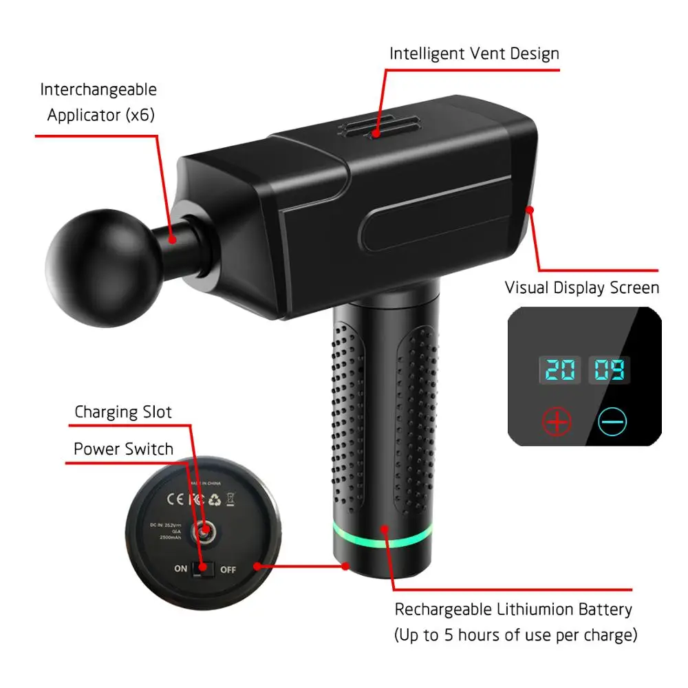 Мышечный массажный пистолет, глубокий тканевый массажер, терапевтический пистолет, упражнения, облегчение боли в мышцах, коррекция фигуры EF0041