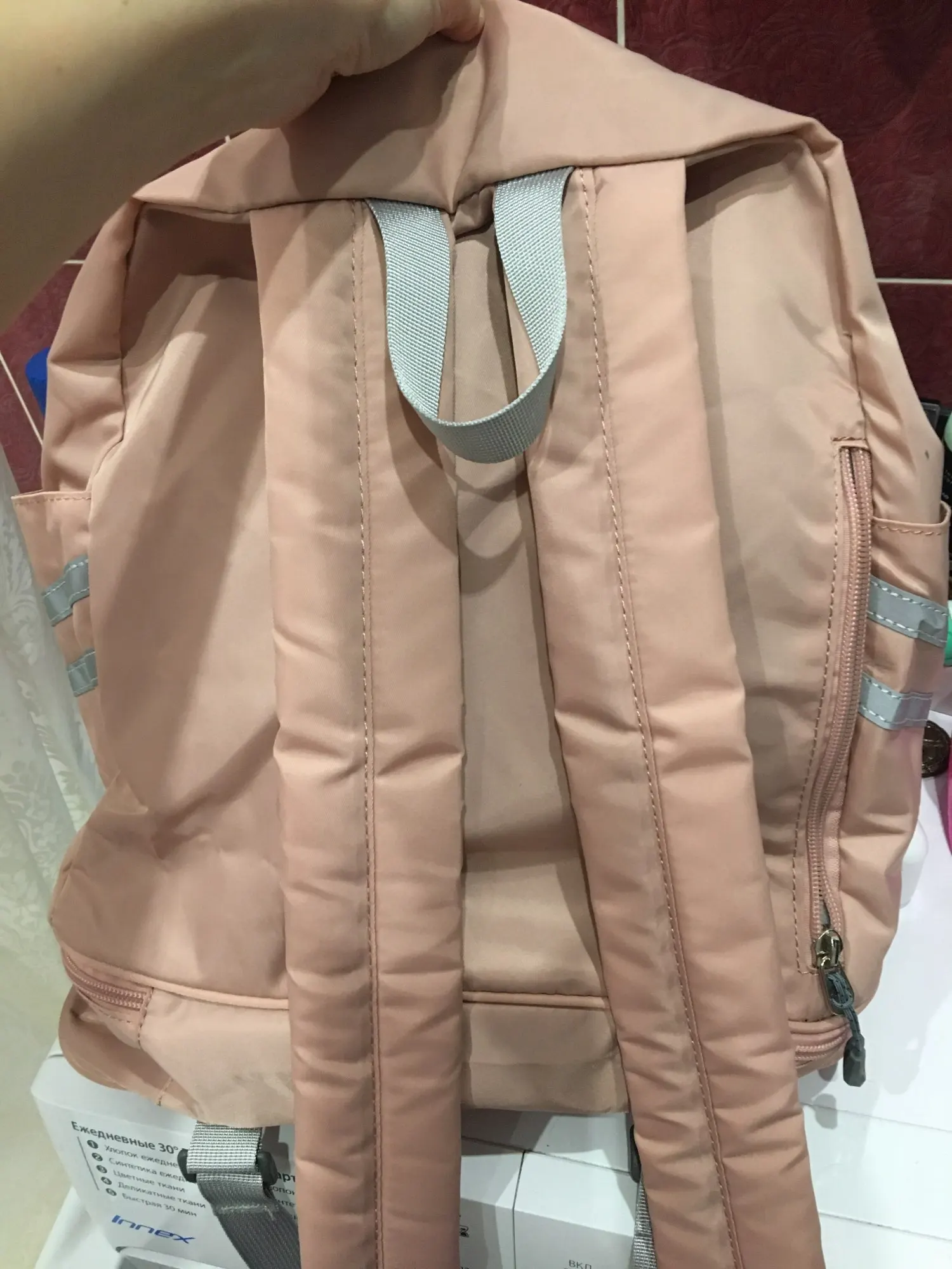 Пользуюсь рюкзаком уже месяц. В целом очень довольна. Нравится цвет и наличие кармашков внутри. Брала из-за "водонепроницаемого" отдела, чтобы класть туда мокрый купальник, так как хожу в бассейн регулярно. Сняла звезду за то, что отдел-таки протекает. Снаружи в углах , поэтому не критично. Также не очень удобный отдел снизу под обувь. Он не стоит как на фото, а сминается (особенно, если обуви там нет). Выглядит это не очень. Спинка мягкая, за счёт чего рюкзак как-то форму не держит, всё что есть внутри давит в спину. Короче говоря единственное, что понравилось это карманы и цвет)) но за свои деньги сойдёт