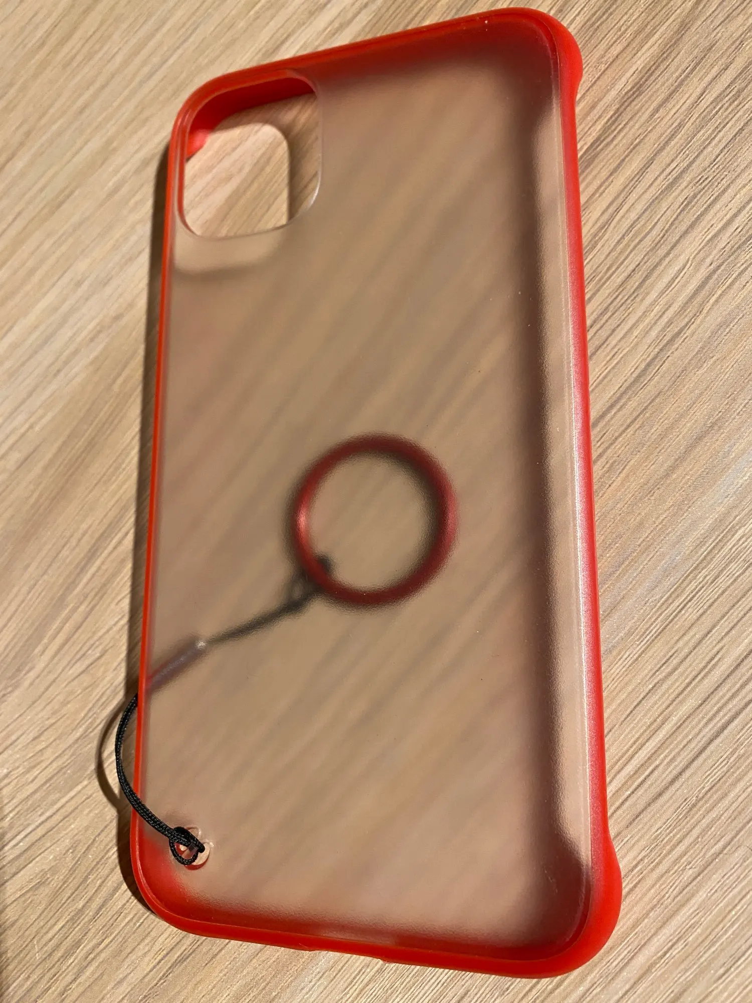 Хороший чехол. Задняя поверхность матовая. Красный цвет ярковат, хотелось бы потемнее. Искали именно такой чехол, чтобы не увеличивал ширину телефона. По ощущениям приятный. Очень тонкий выступ над камерой. Из-за того что дырка под кольцо на задней части, на столе лежит неровно. Пришёл недели через 3 в общей посылке. Кольцо железное, штучка от него серебряная раскручивается, зачем непонятно =) В общем, чехлом за эту цену довольны.