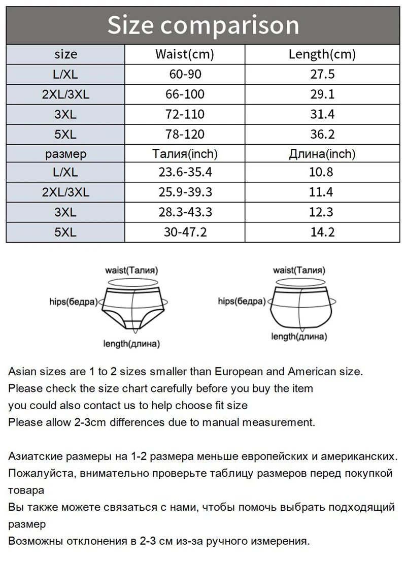 Трусики из синтетики. Есть затяжки и новые делаются быстро. Хотела из хлопка но у них защита расположена низко. В этих трусиках высокая. Размерной сетке соответствуют. Я боялась ошибится в размере и взяла больше и прогадала. На мои ОБ 100 взяла ХХХХL. А они большие. На попе плохо держутся, ерзаются туда сюда. И очень сильно шуршат. Может были бы в обтяжку, то так сильно не шуршали бы. Хотя я в этом не уверена. И мне не очень приятно ходить в синтетике. Летом наверное в них будет очень жарко. Не протекают. Почему-то не могу разместить фото, нет такого раздела.