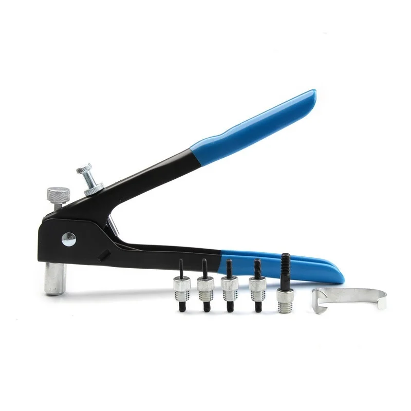 Поставляется с заклепками и множеством оправков и носочков для удобного заклепки.
